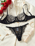 Ladies See Through Rose Embroidery lingerie Set SKLG4142