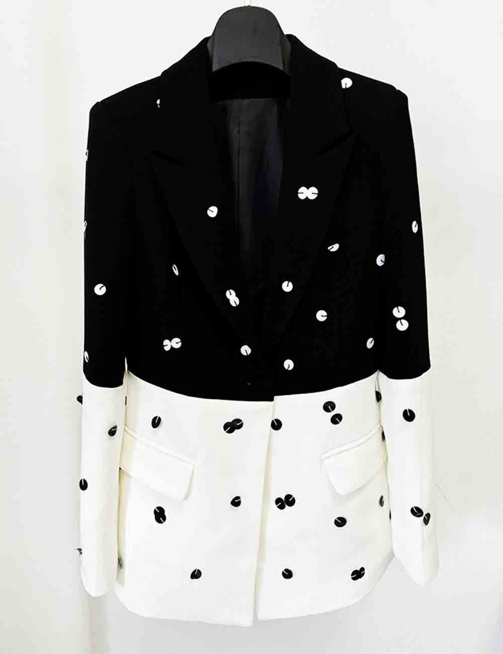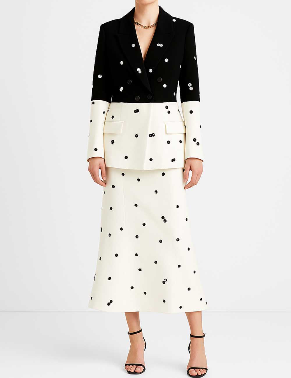 Ladies Sequin Notched Lapel Blazer & Maxi Skirt 2PCS Suit