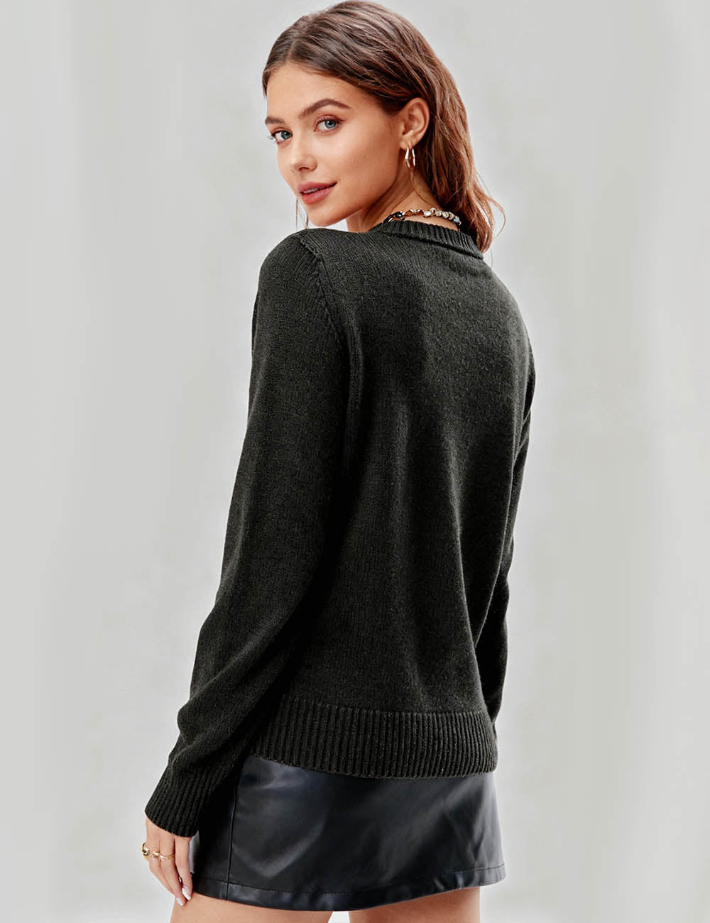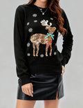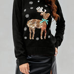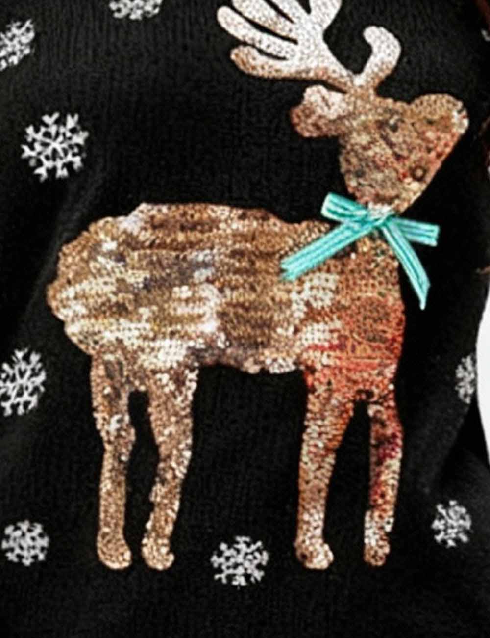 Ladies Sequin Reindeer Round Neck Christmas Knit Sweater