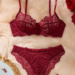 Ladies Sexy Sheer Lace Embroidery Scalloped Edge Lingerie Set