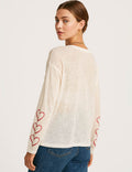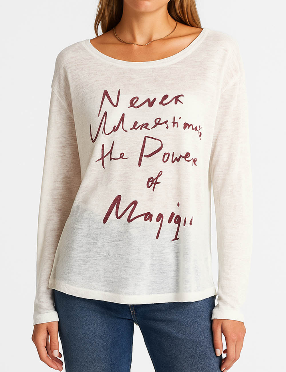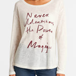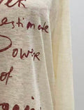 Ladies Sheer Letter Pullover T-Shirt Round Neck Long Sleeves Tee
