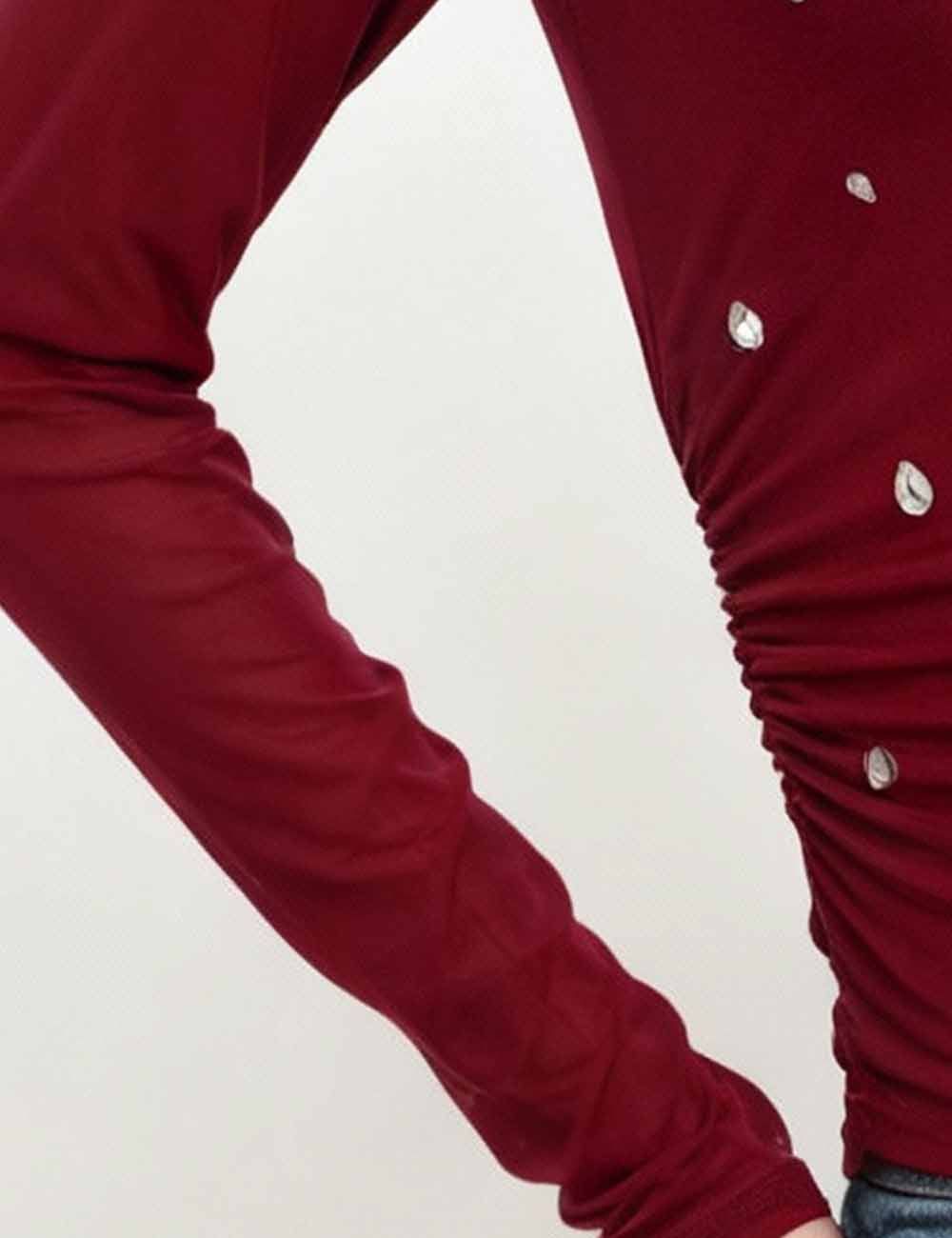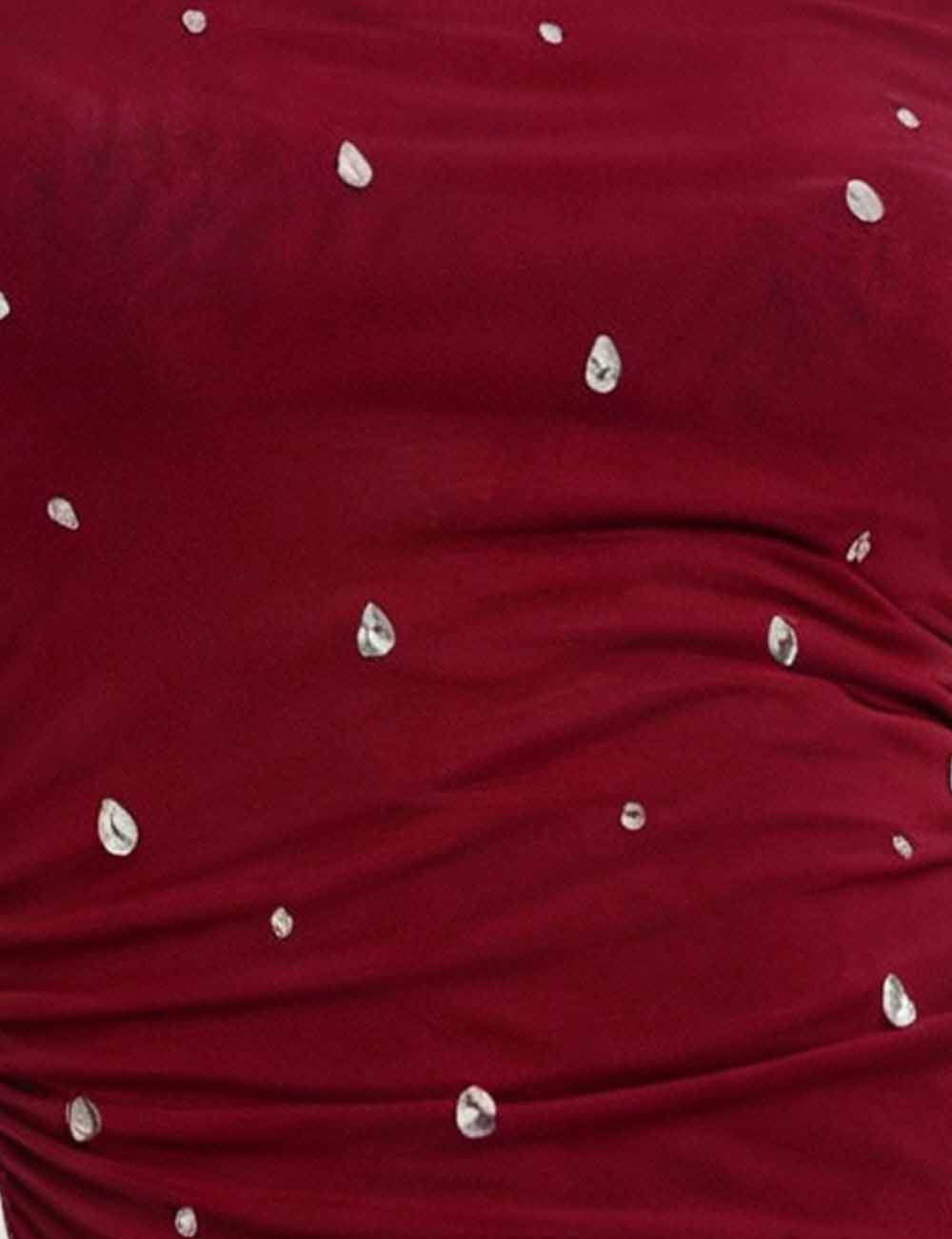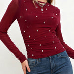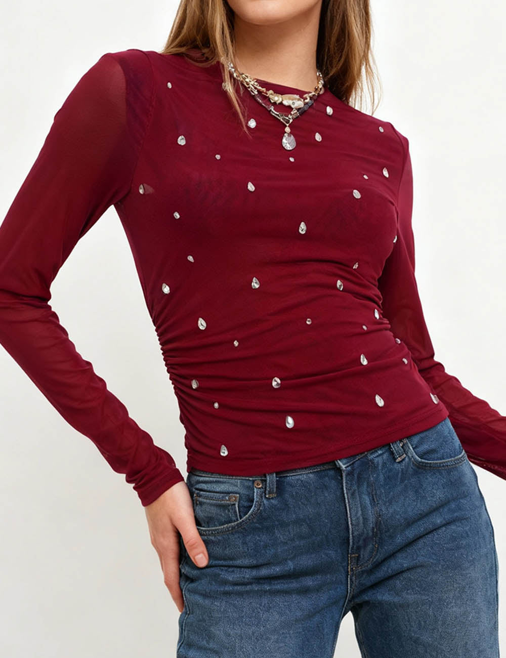 Ladies Sheer Mesh Rhinestone Round Neck Layering Top