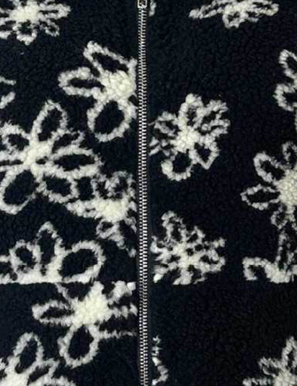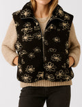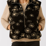 Ladies Sherpa Fleece Floral Pattern Zipper Front Vest Jacket