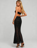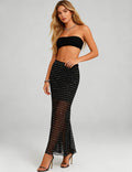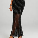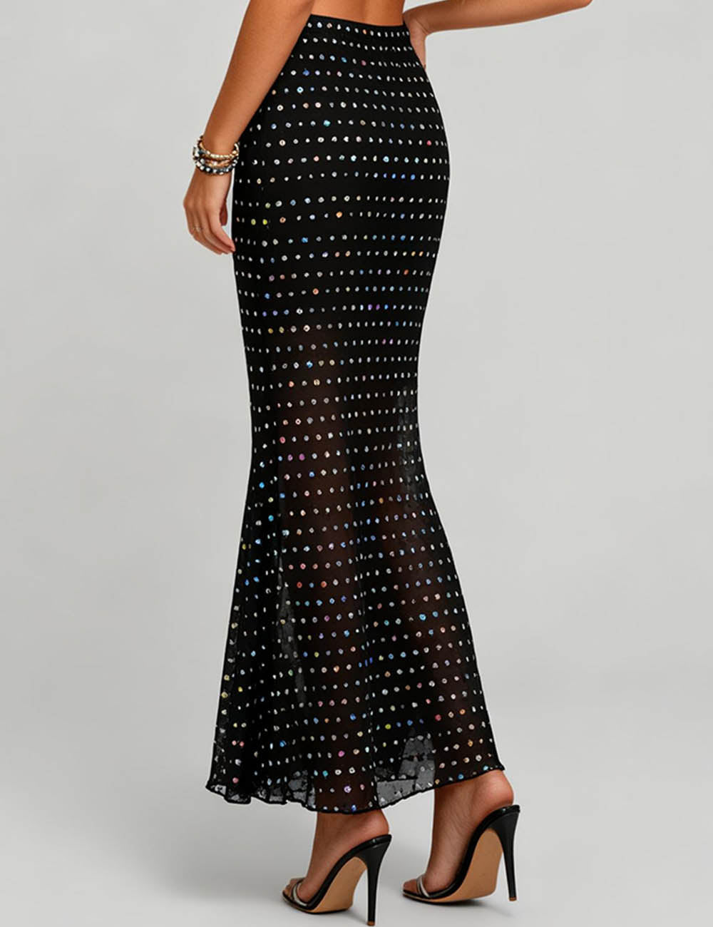 Ladies Shiny Sequin Mesh Sheer Elastic Waist Maxi Skirt