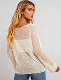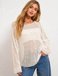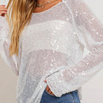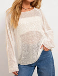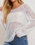 Ladies Shiny Sequin Sheer Round Neck Long Sleeves Top