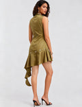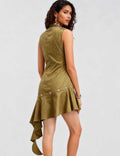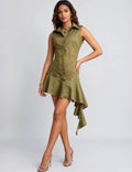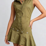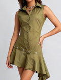 Ladies Shirt Collar Button Front Asym Ruffle Mini Dress