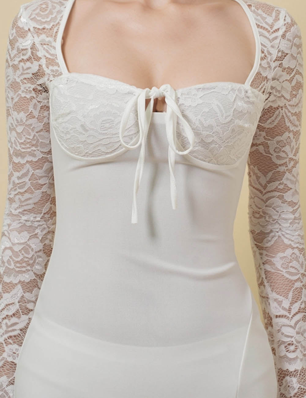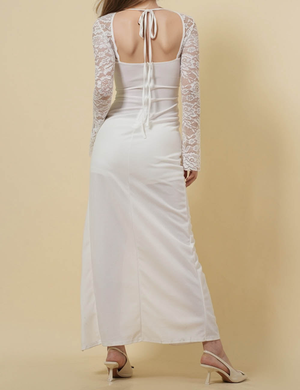 Ladies Side Split Lace Long Sleeves Maxi Dress 8SKD51104