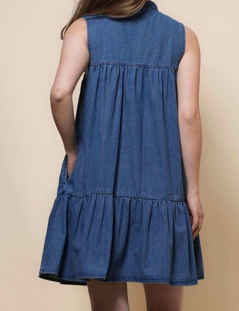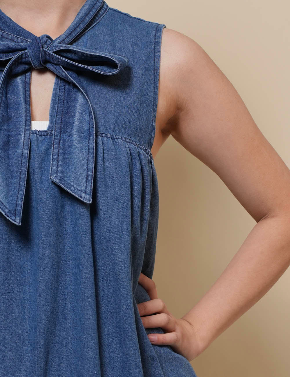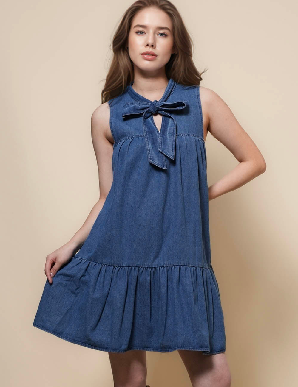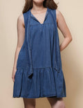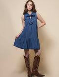 Ladies Sleeveless Strape Tie Denim Mini Dresss SKD50030