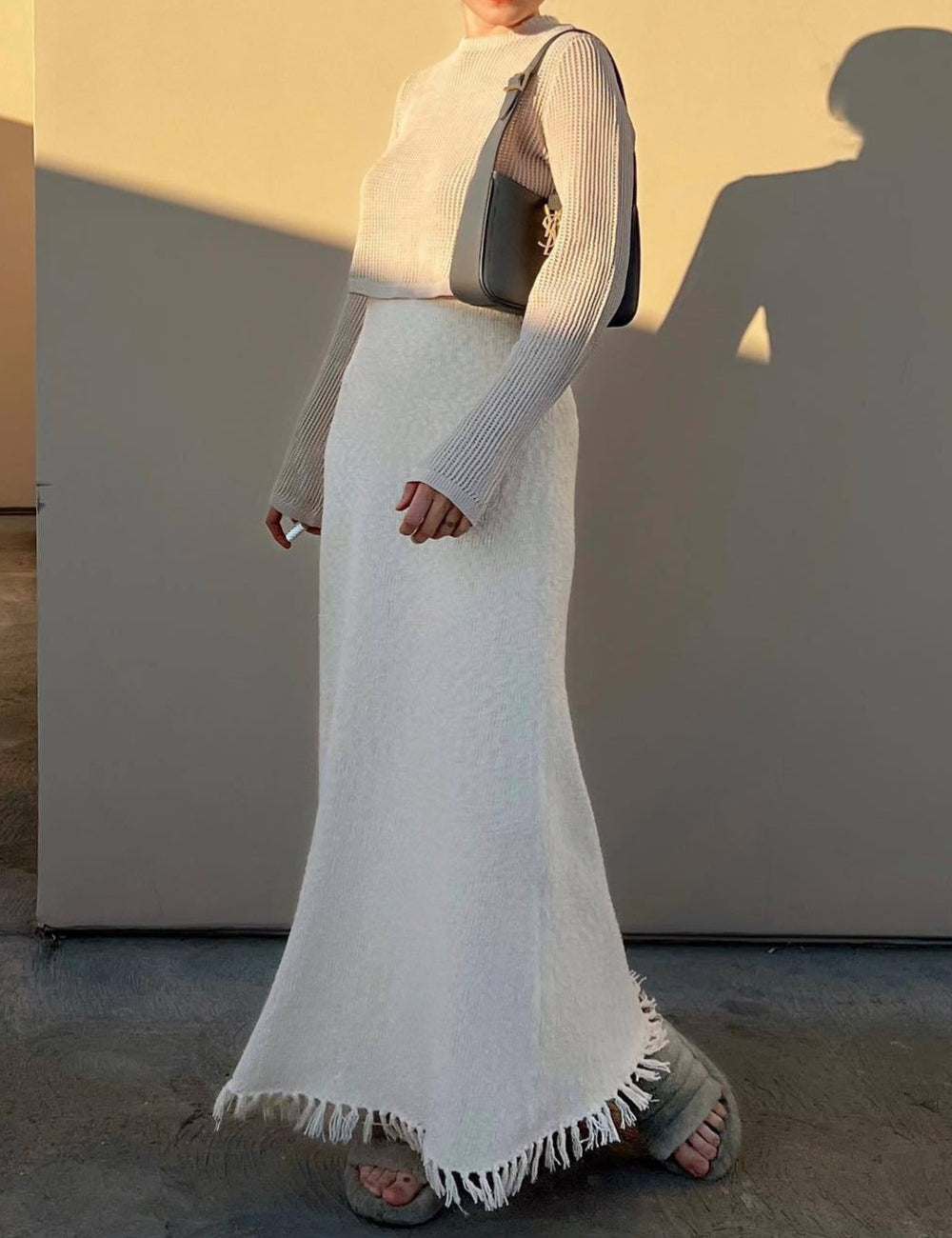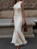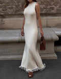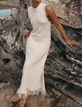 Ladies Sleeveless Tassels Hem Sweater Midi Dress SKD41067