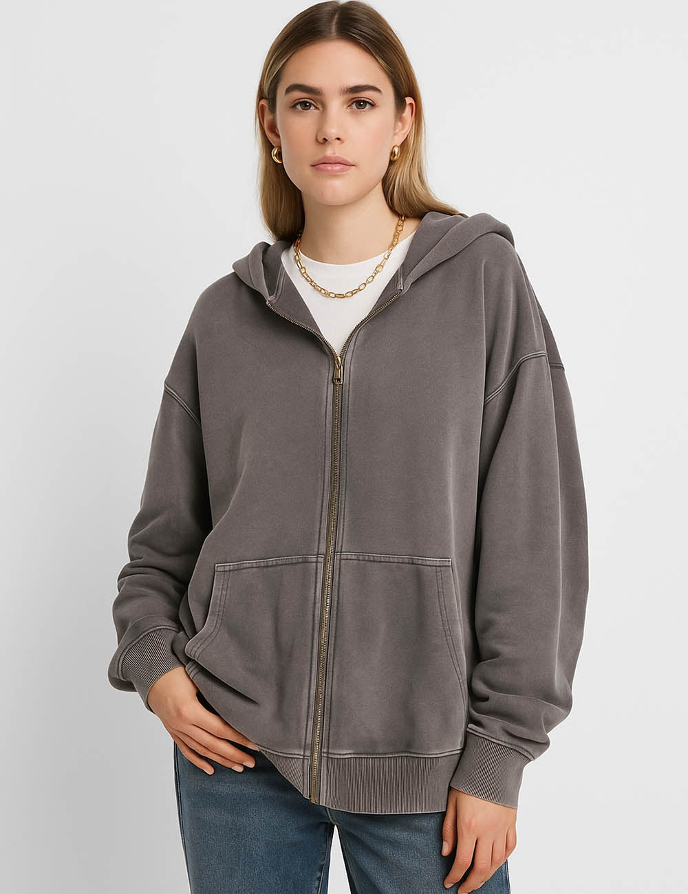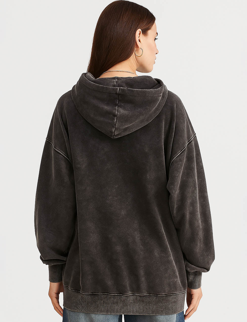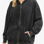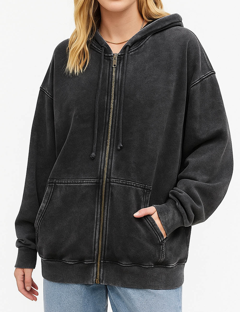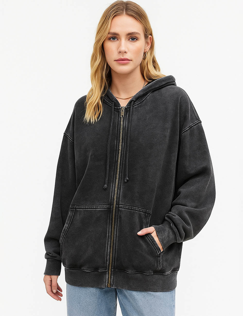 Ladies Slouchy Washed Zip Hooded Sweatshirt SKT4700