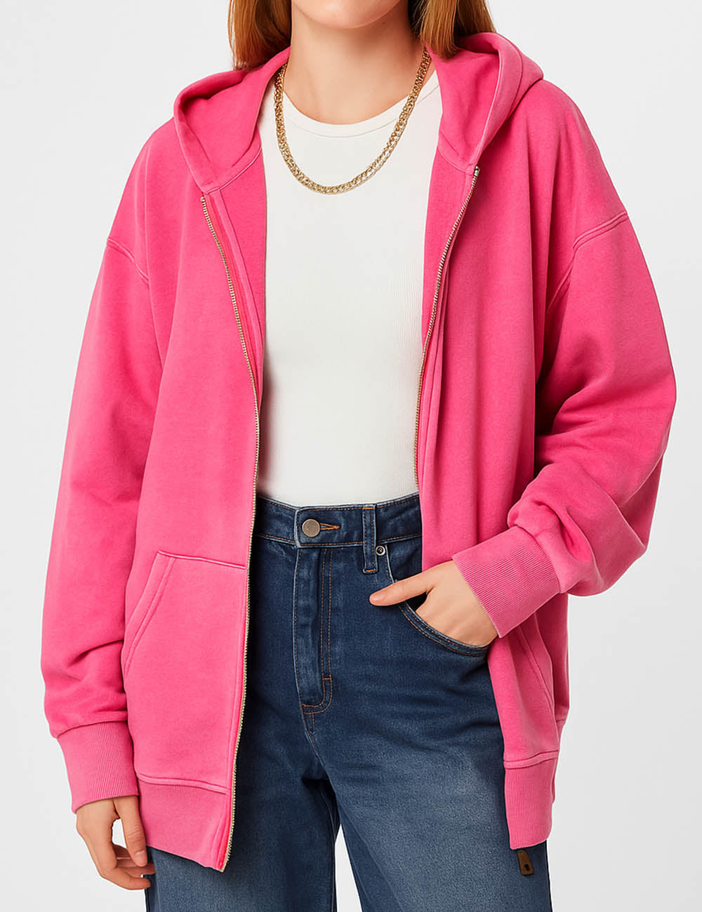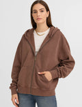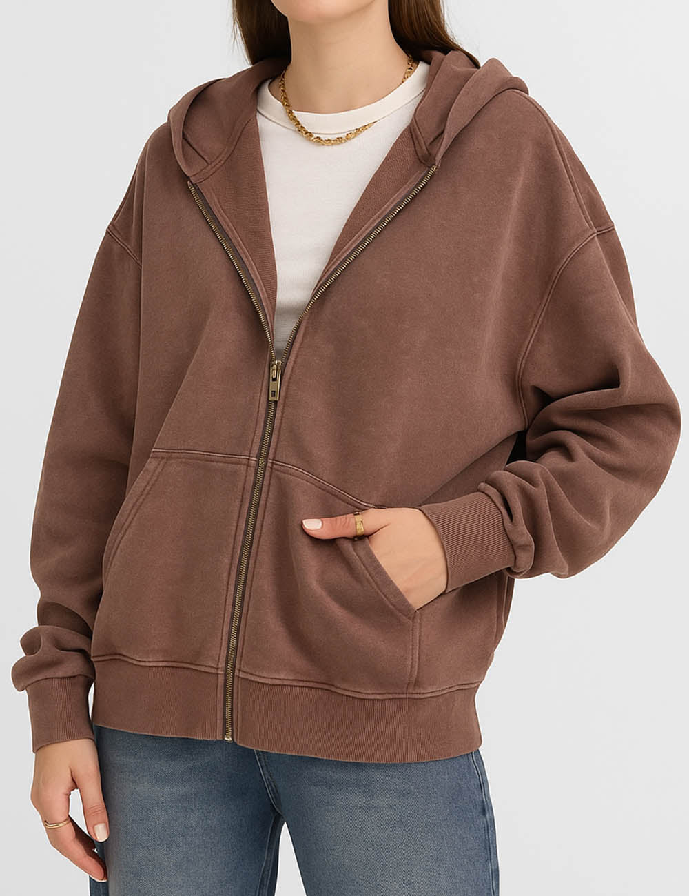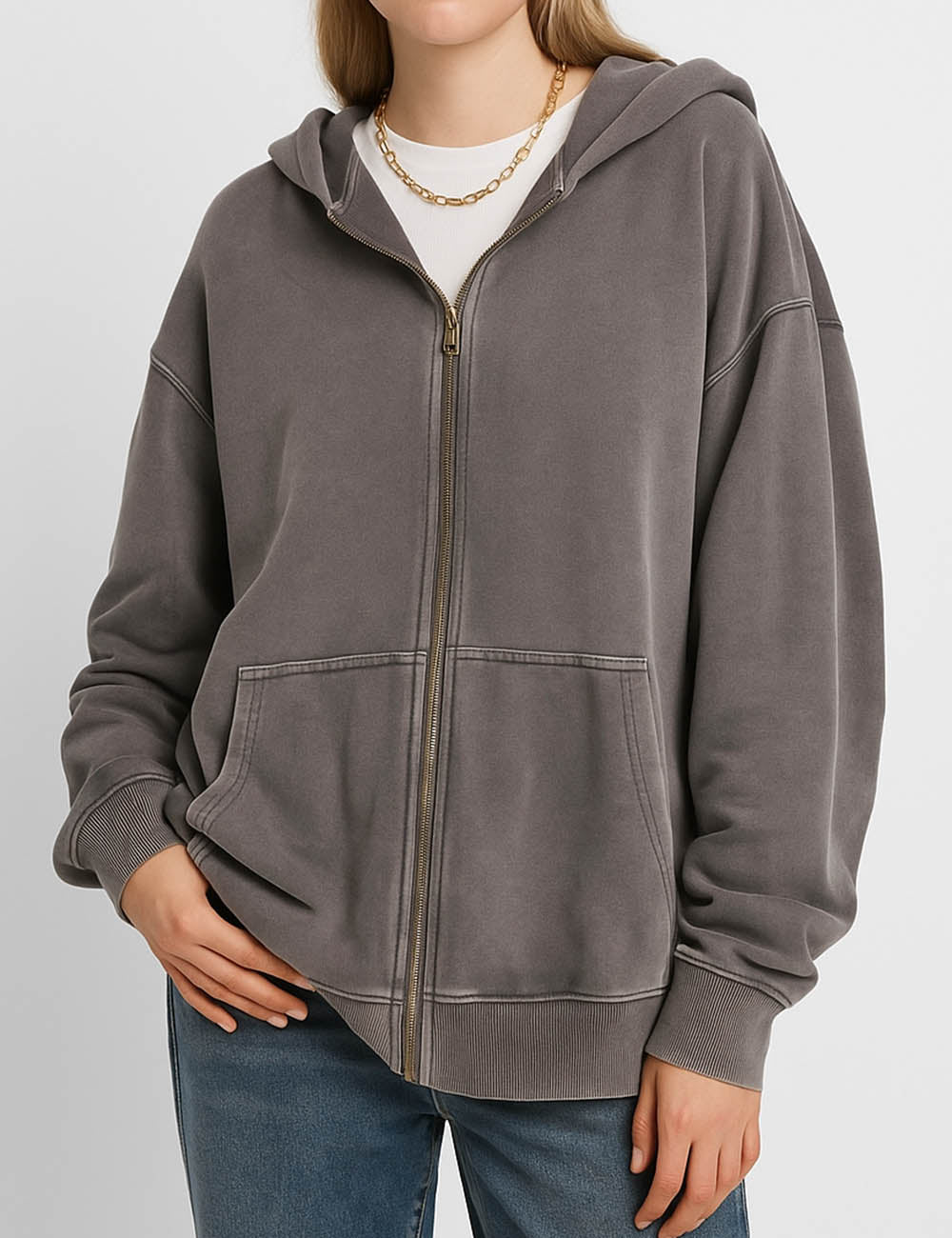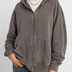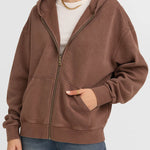 Ladies Slouchy Washed Zip Hooded Sweatshirt SKT4700