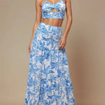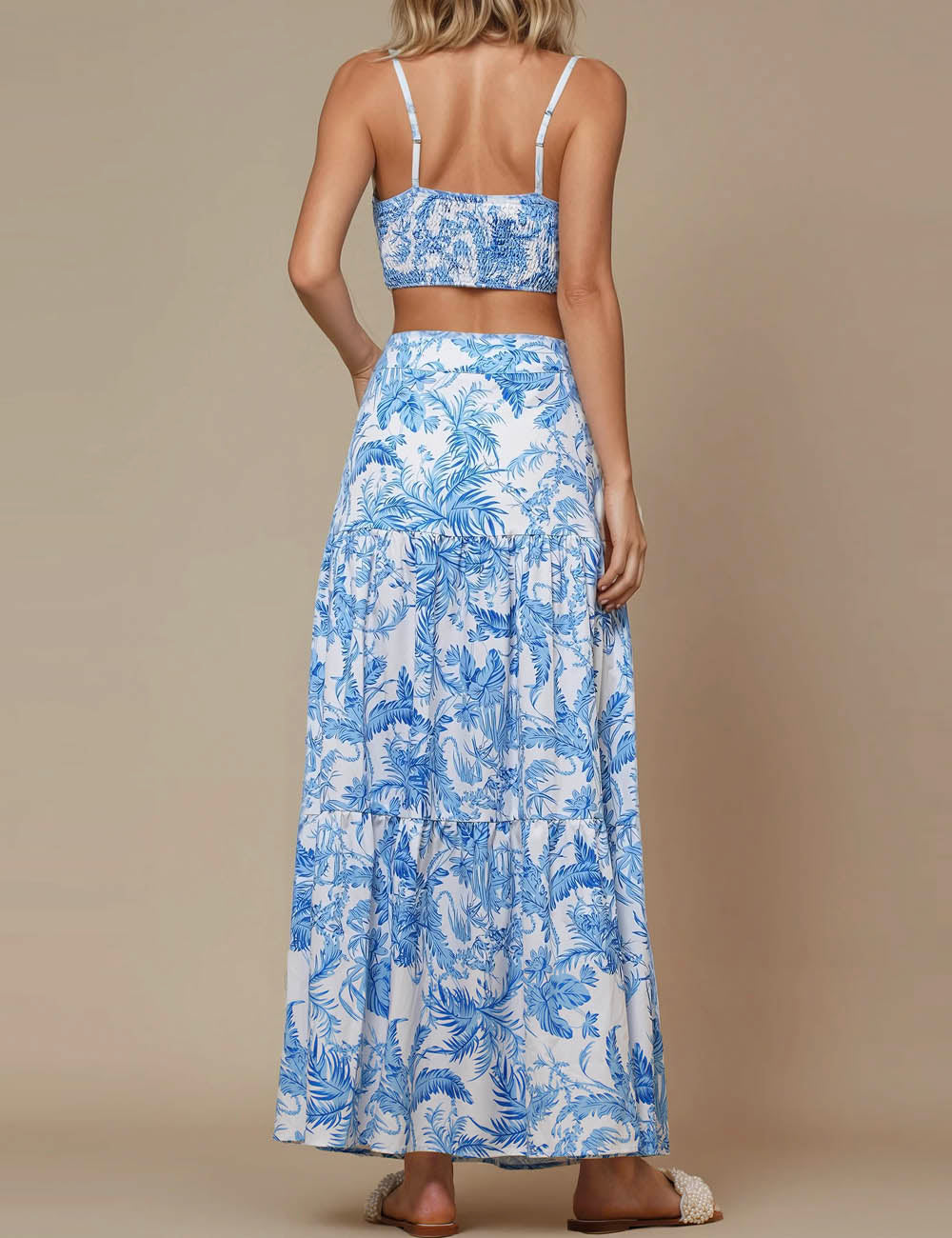 Ladies Smcoking Back Bowknot Cami Top & Maxi Skirt Set SKST50366
