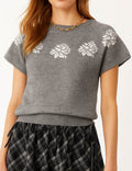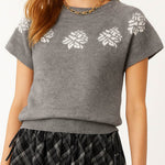 Ladies Snowflake Floral Pattern Short Sleeves Knit Top