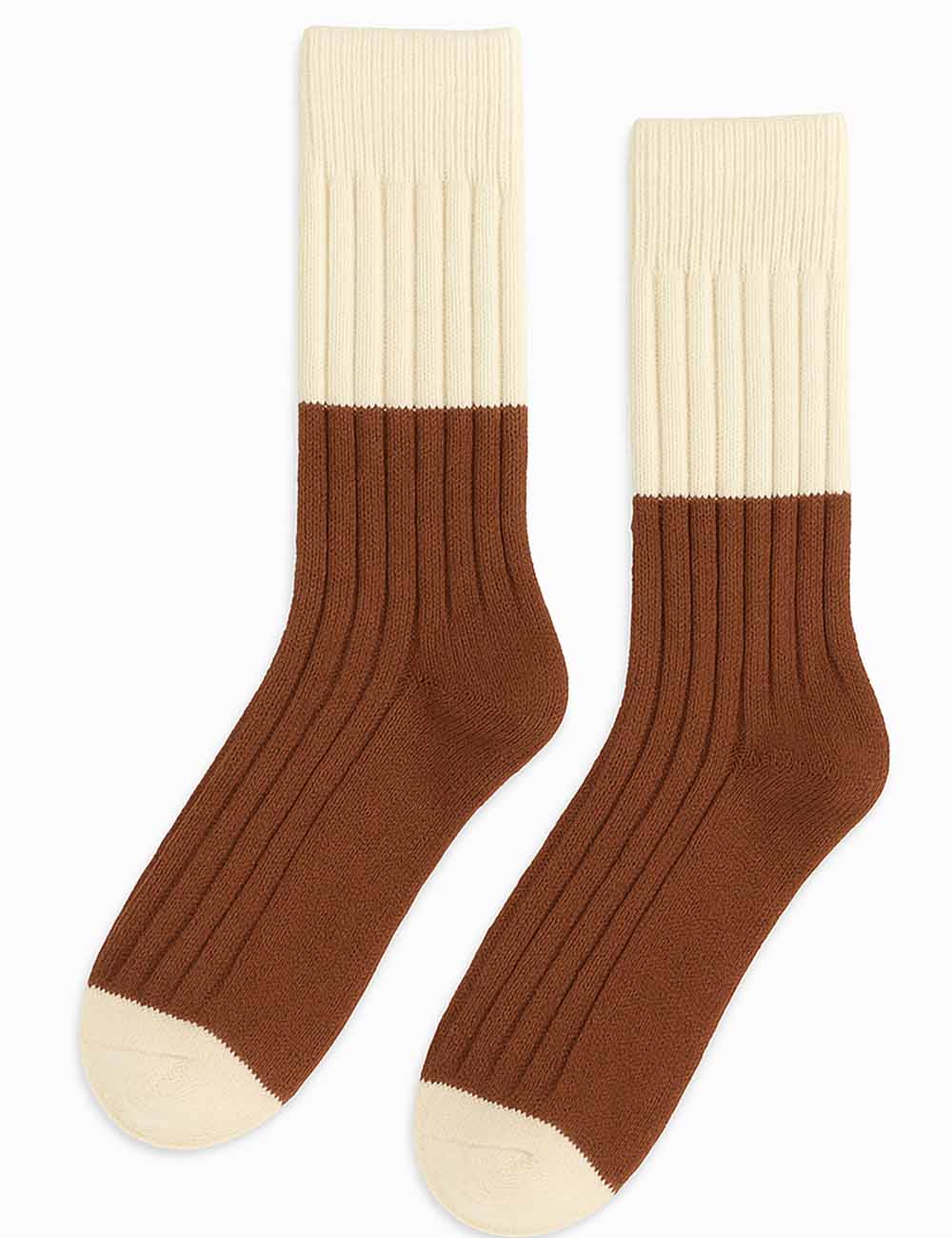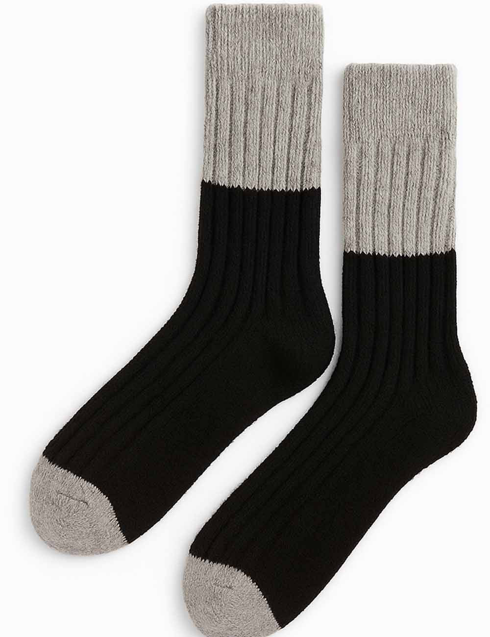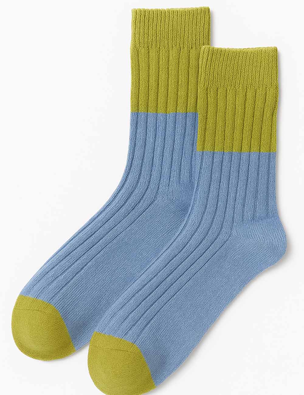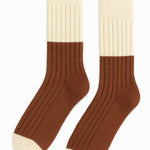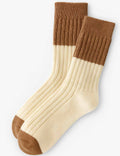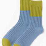 Ladies Soft Warm Winter Color Block Ribbed Midi Calf Socks