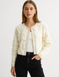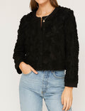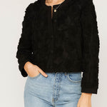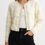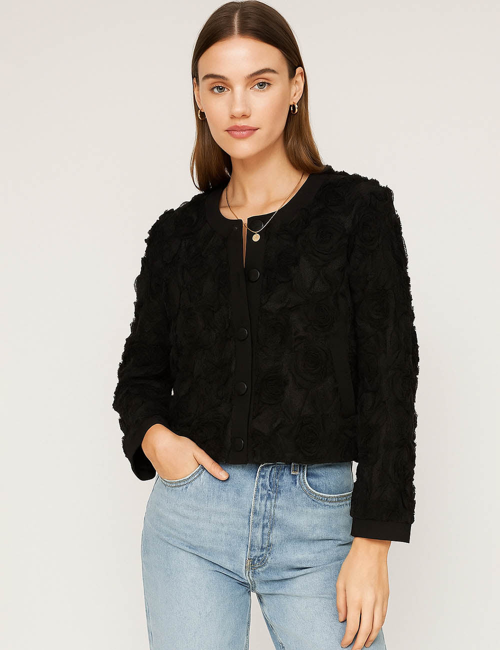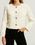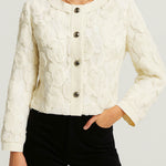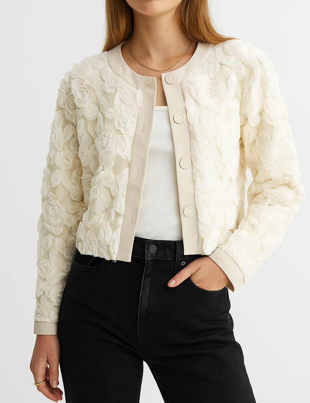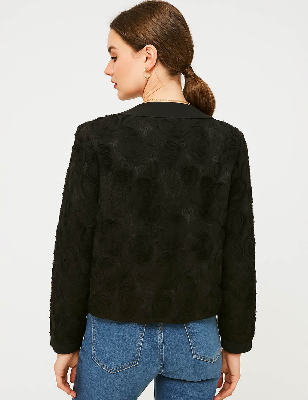 Ladies Solid Color 3D Floral Embroidery Button Down Jacket