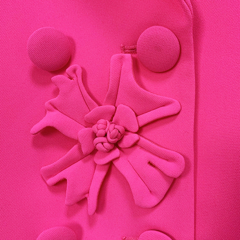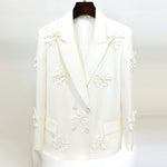 Ladies Solid Color 3D Flower Double Breast Long Blazer