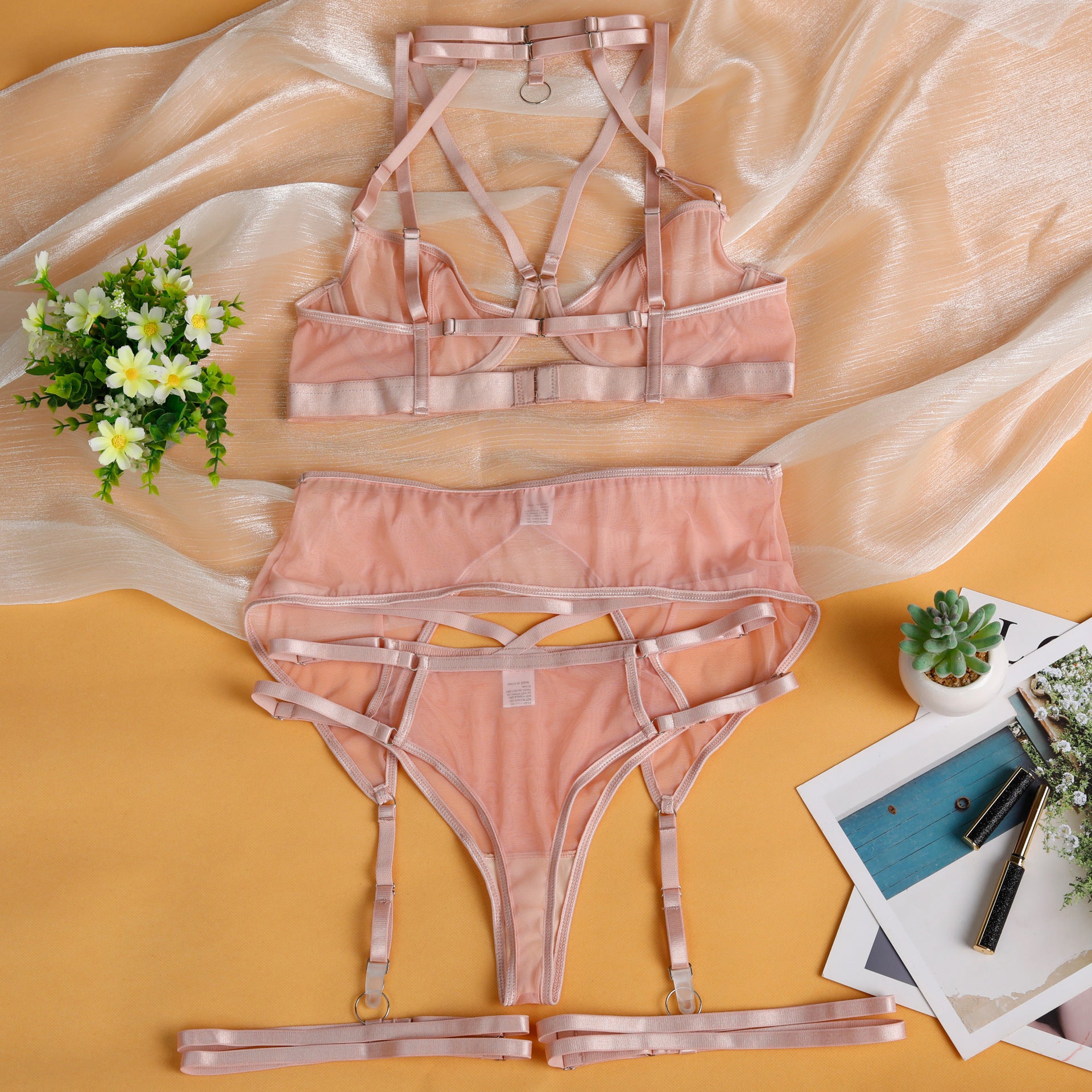 Ladies Solid Color 3PCS Lingerie Set SKLG4090