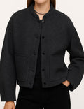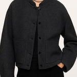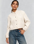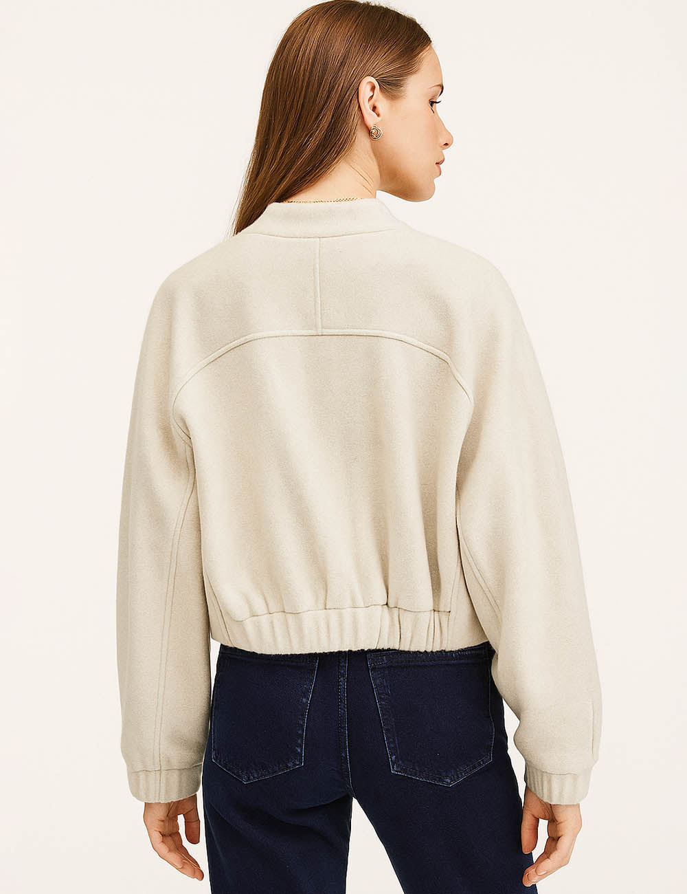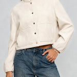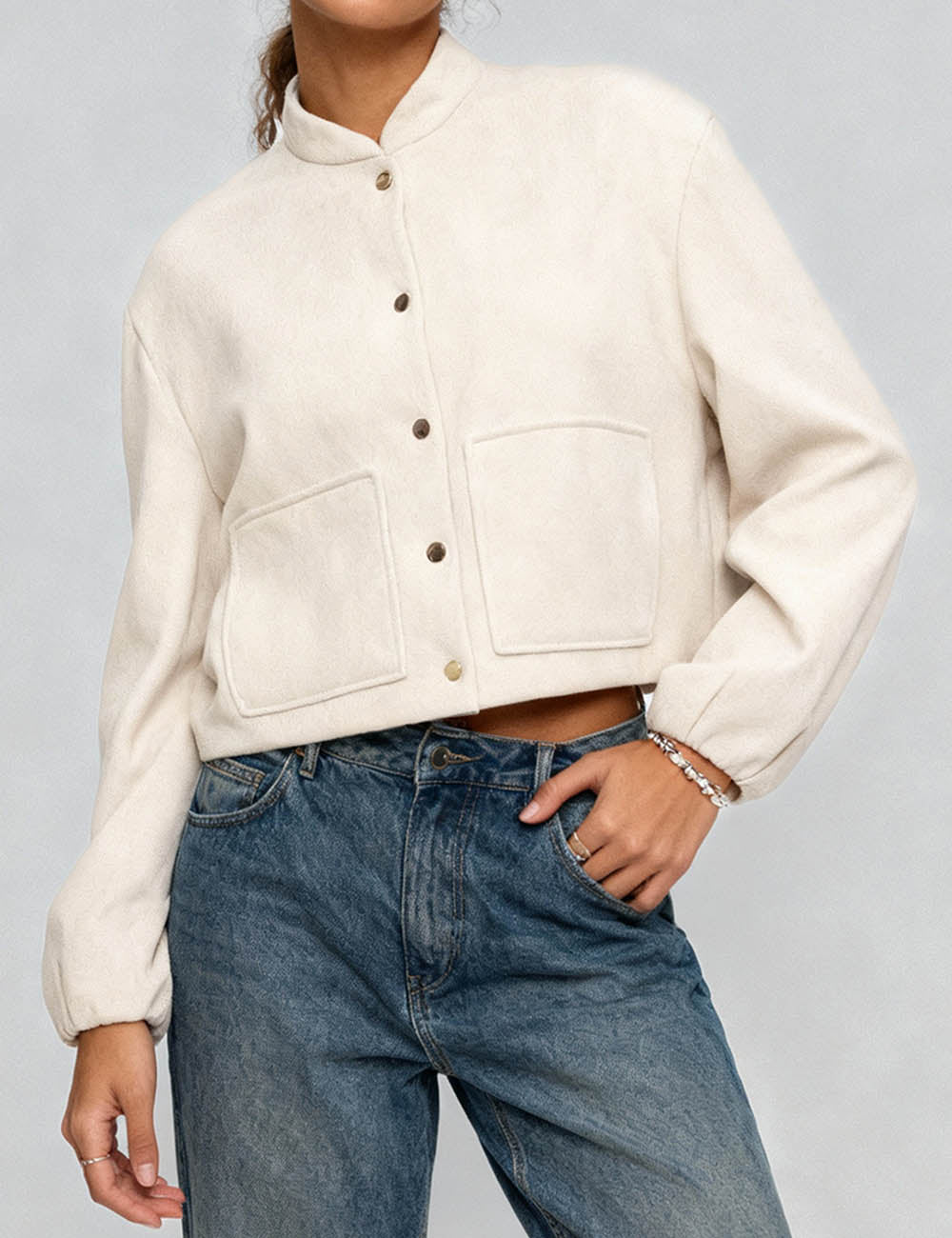 Ladies Solid Color Baseball Collar Patch Pocket Jacket