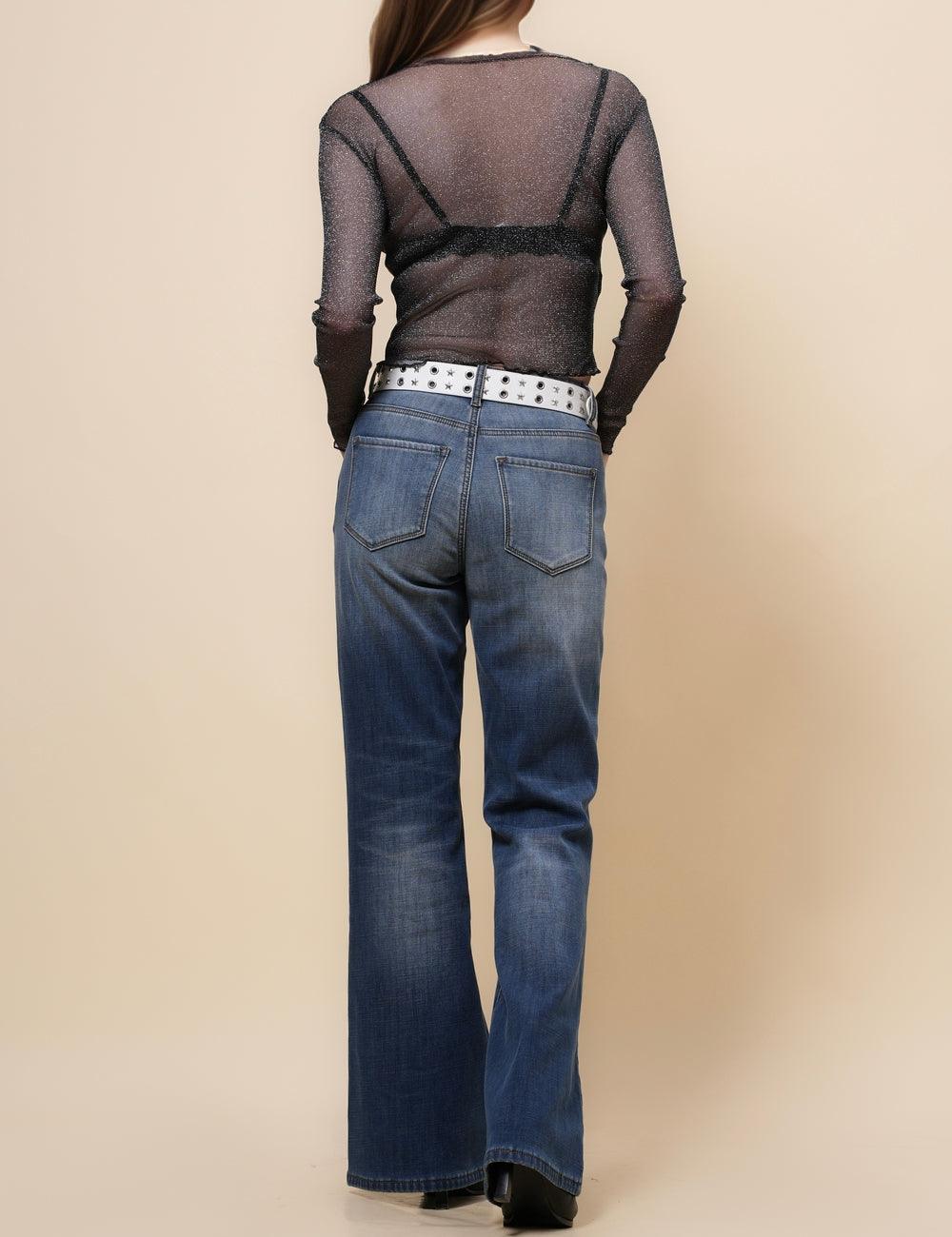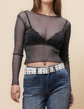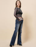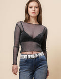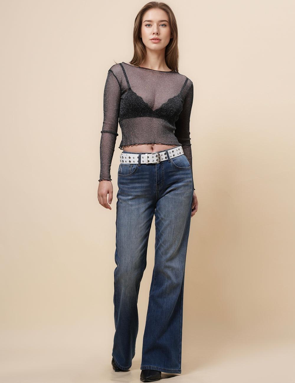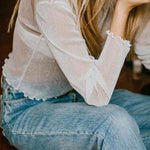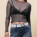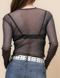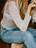 Ladies Solid Color Blouse See Sheer Layring Top SKT4939