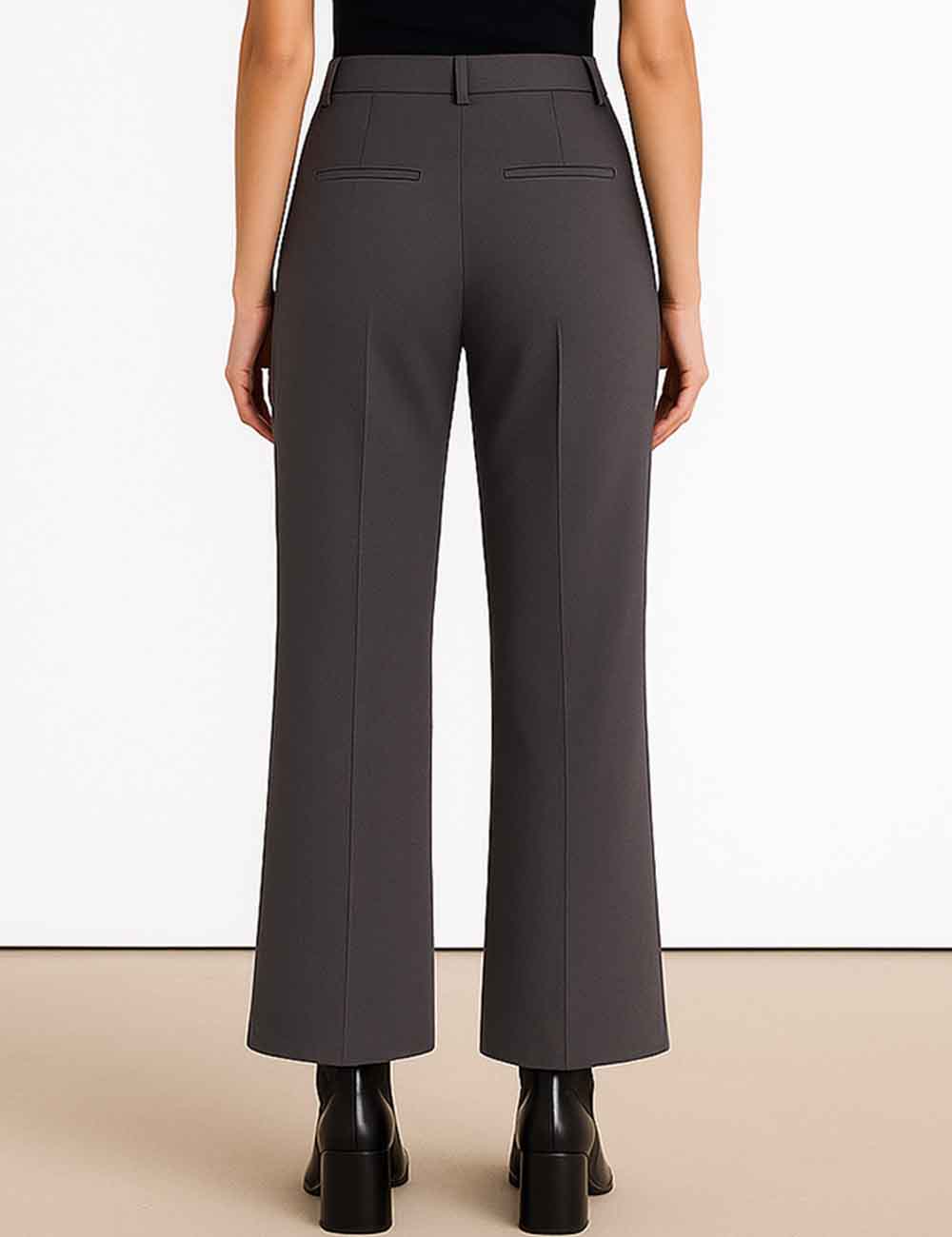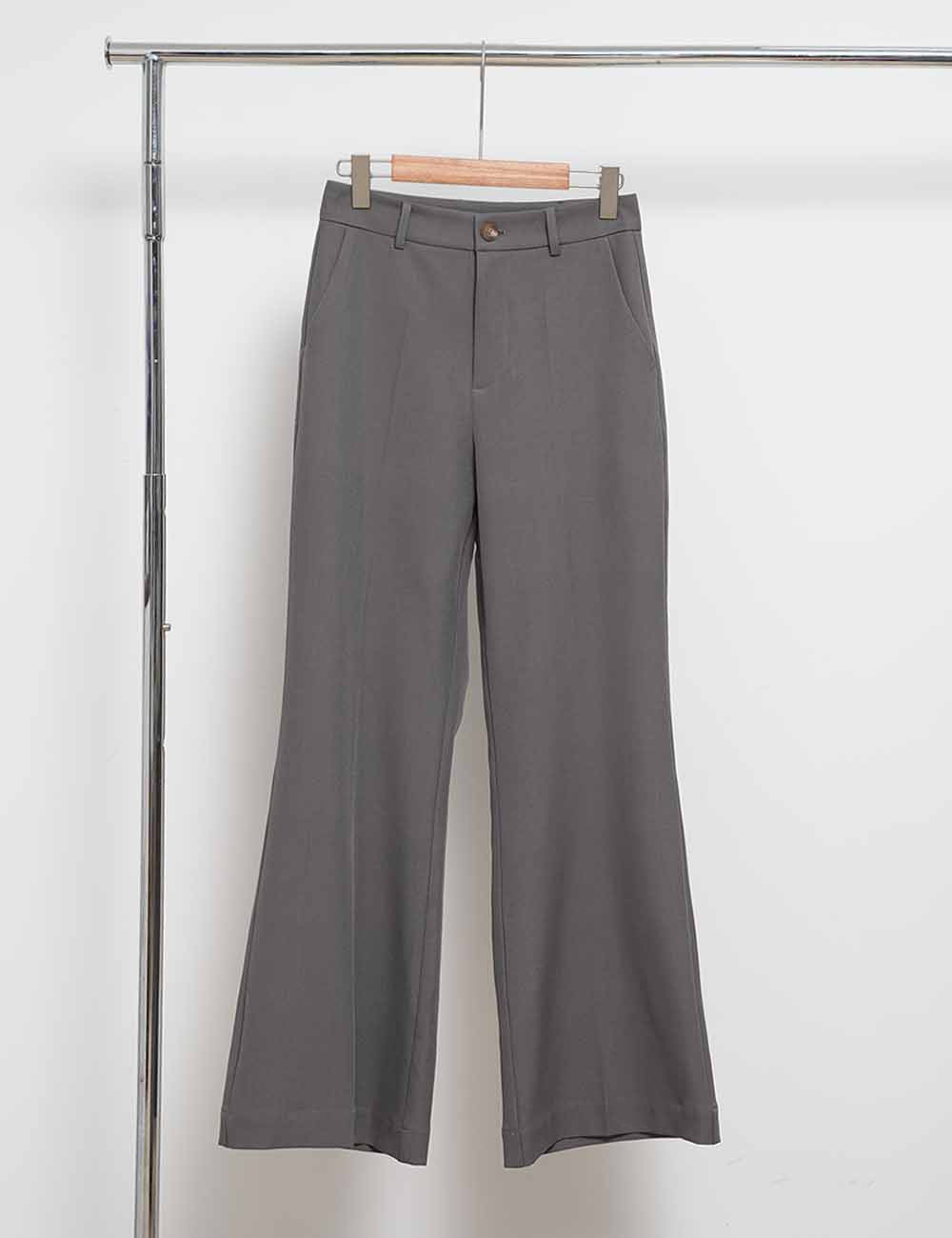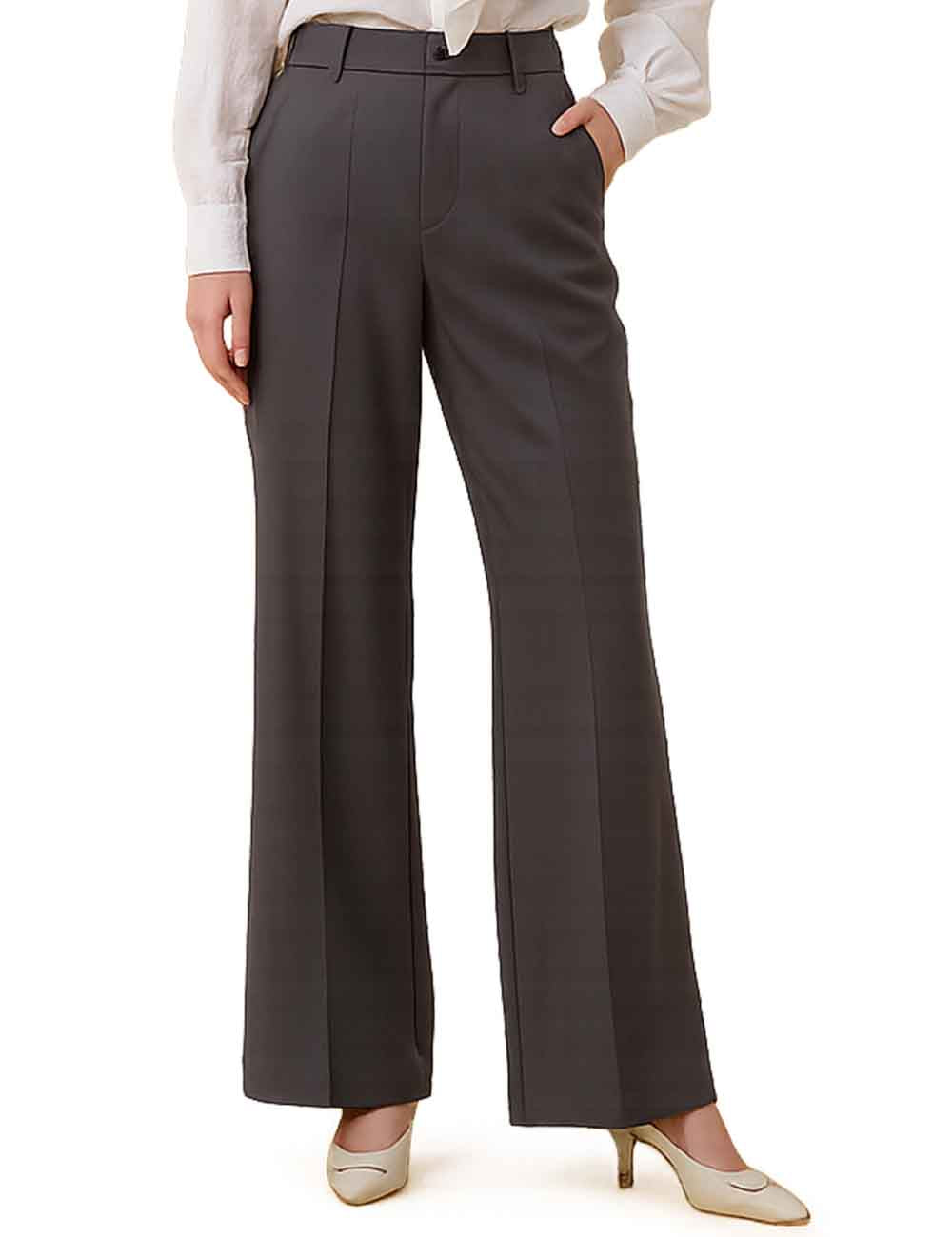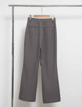 Ladies Solid Color Button Closure Slight Bell Leg Trousers