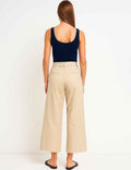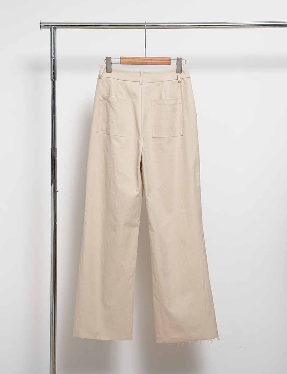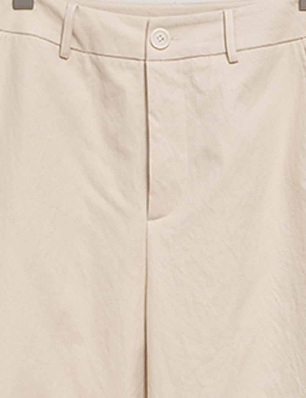 Ladies Solid Color Button Closure Slight Bell Leg Trousers