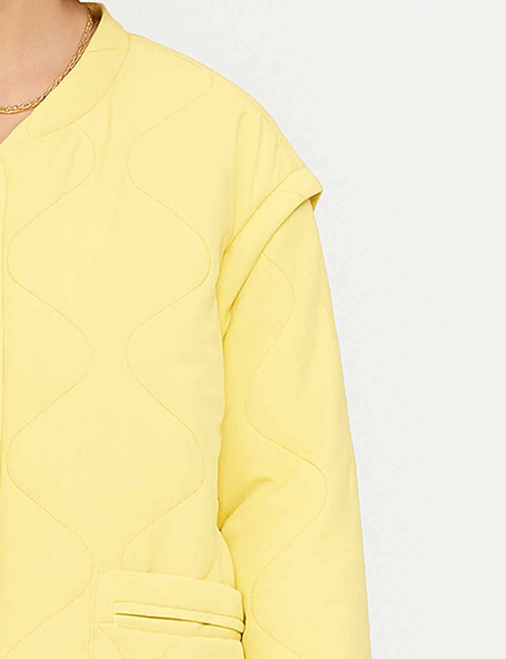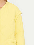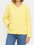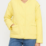 Ladies Solid Color Button Front Quilted Cotton Padded Jacket
