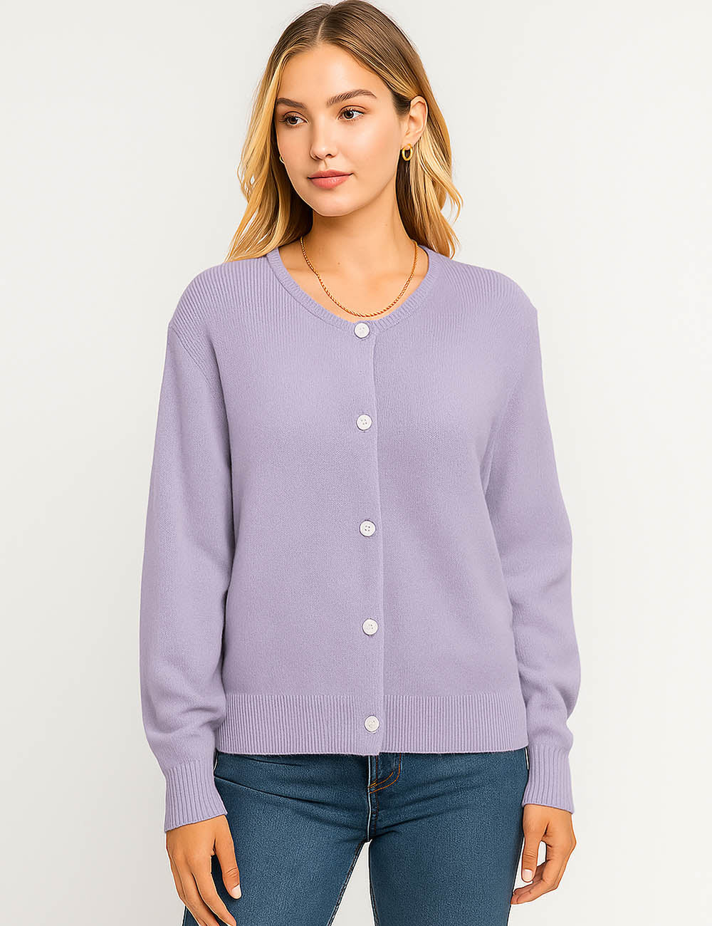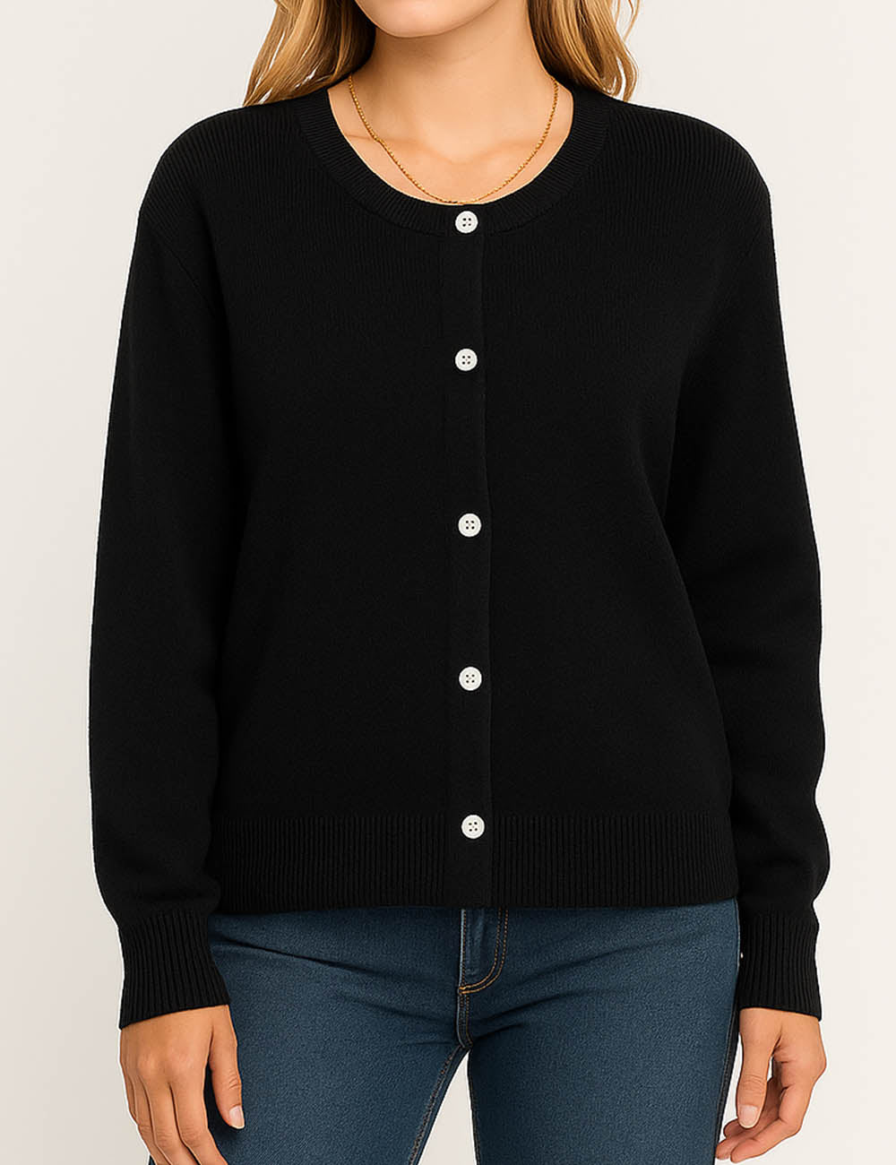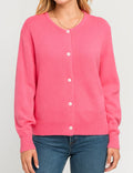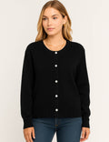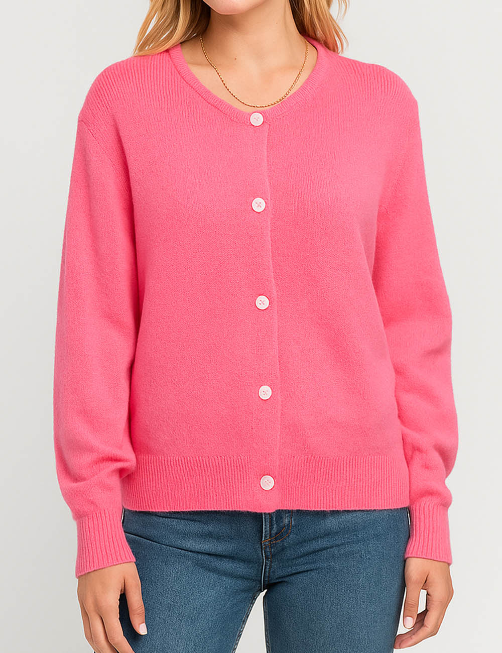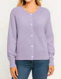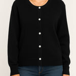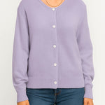 Ladies Solid Color Button Front Ribbed Knit Cardigan