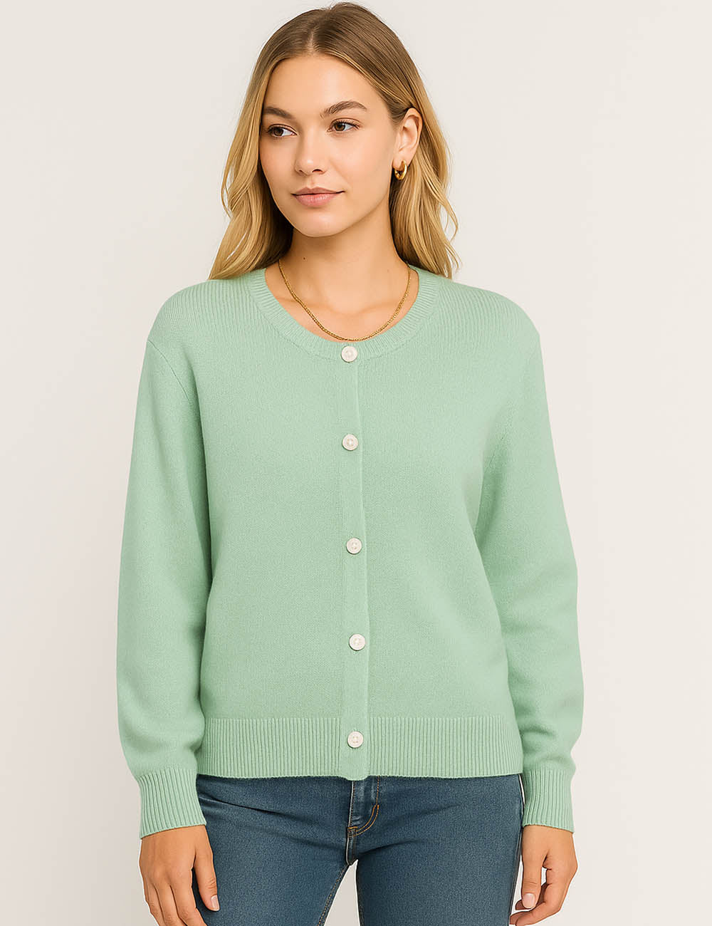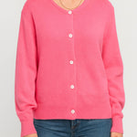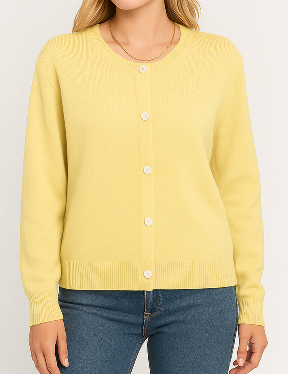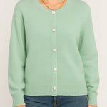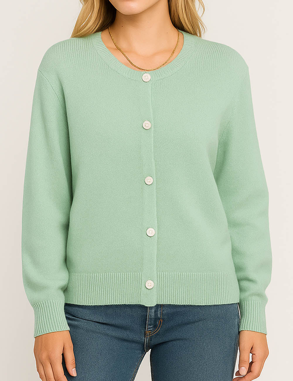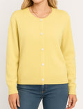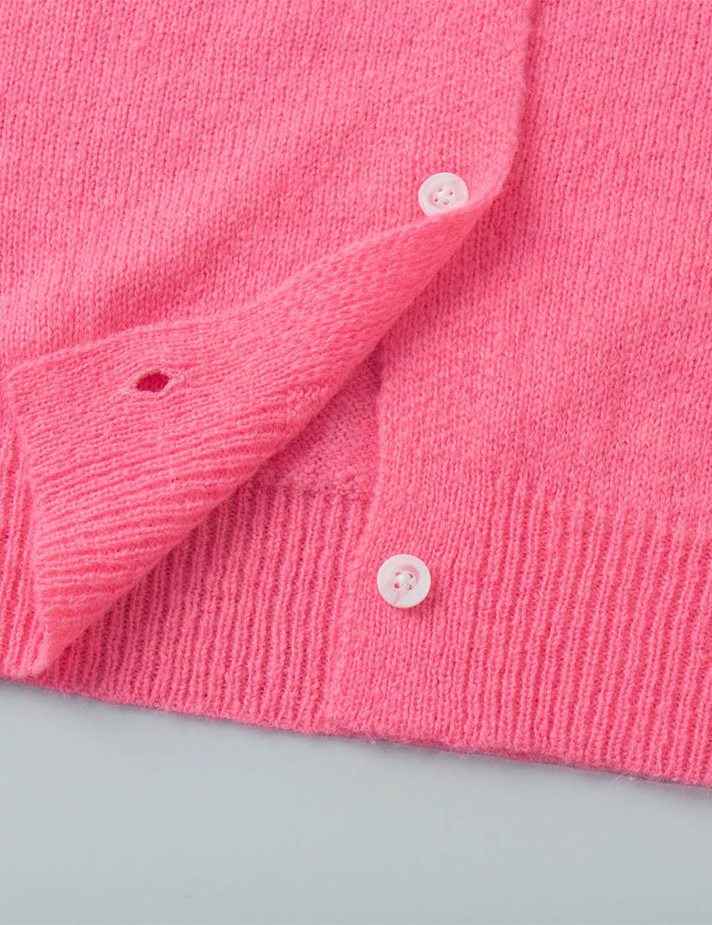 Ladies Solid Color Button Front Ribbed Knit Cardigan