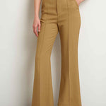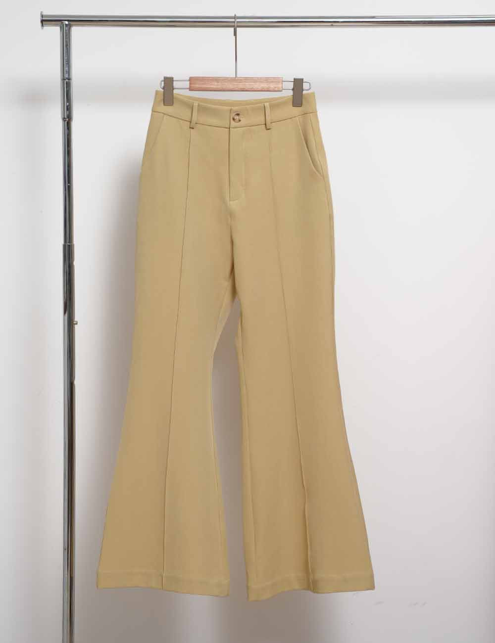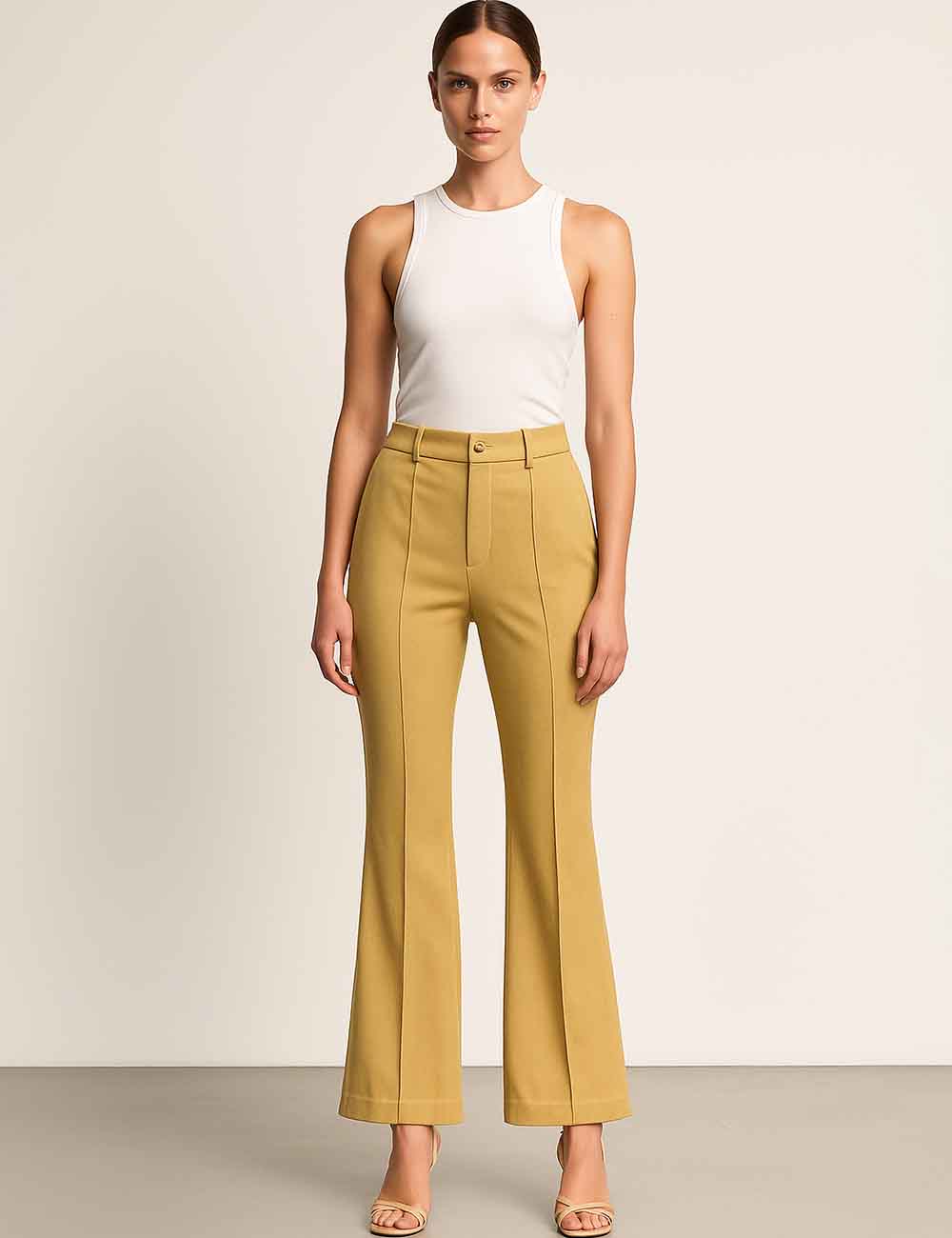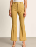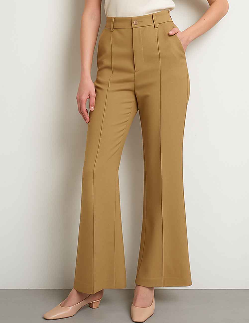 Ladies Solid Color Button Front Slight Bell Leg Trousers