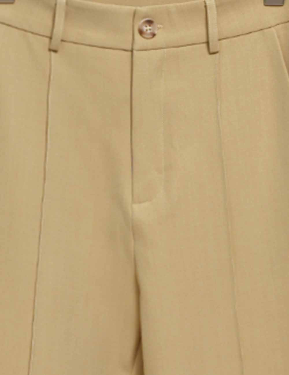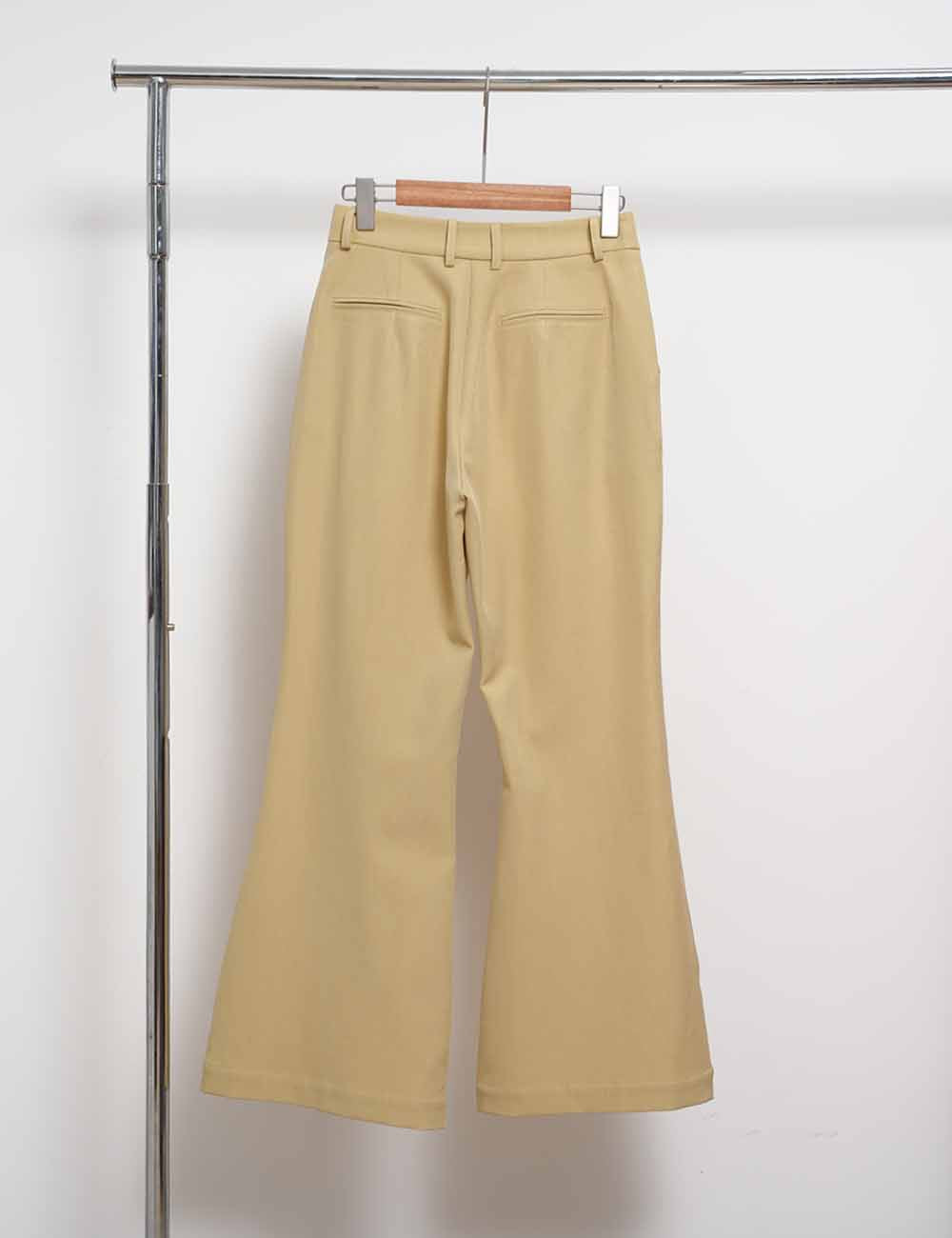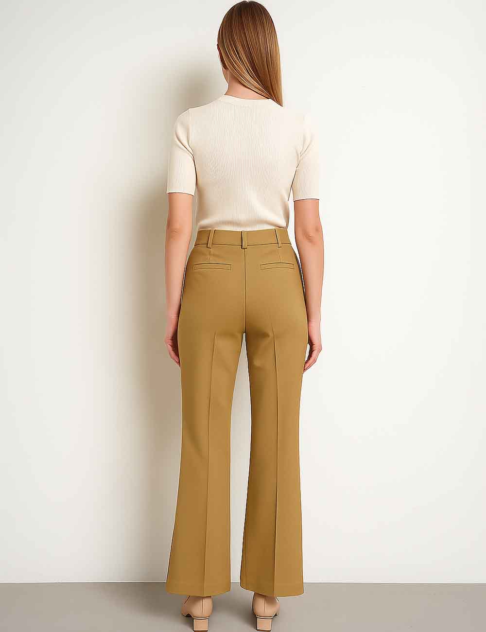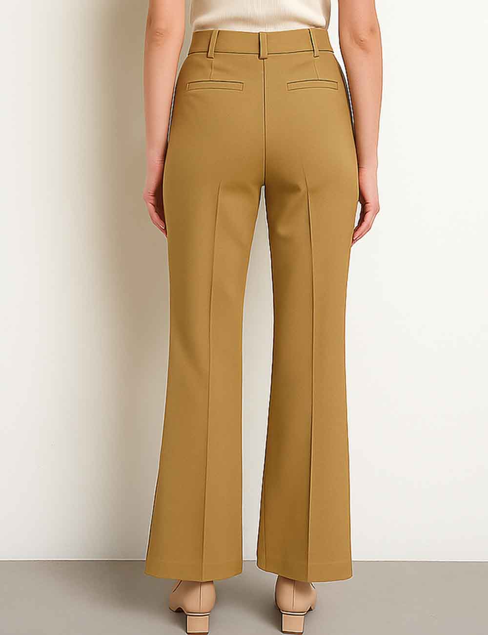 Ladies Solid Color Button Front Slight Bell Leg Trousers