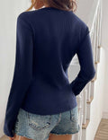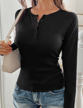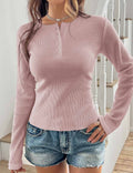 Ladies Solid Color Button Long Sleeves Waffle Layering Top