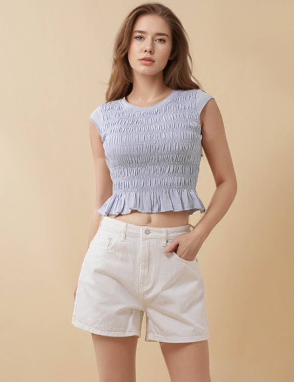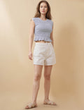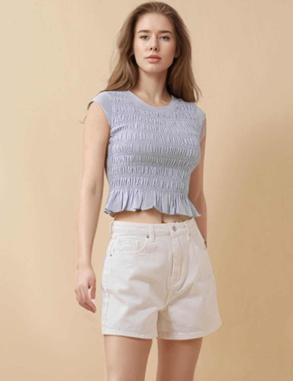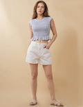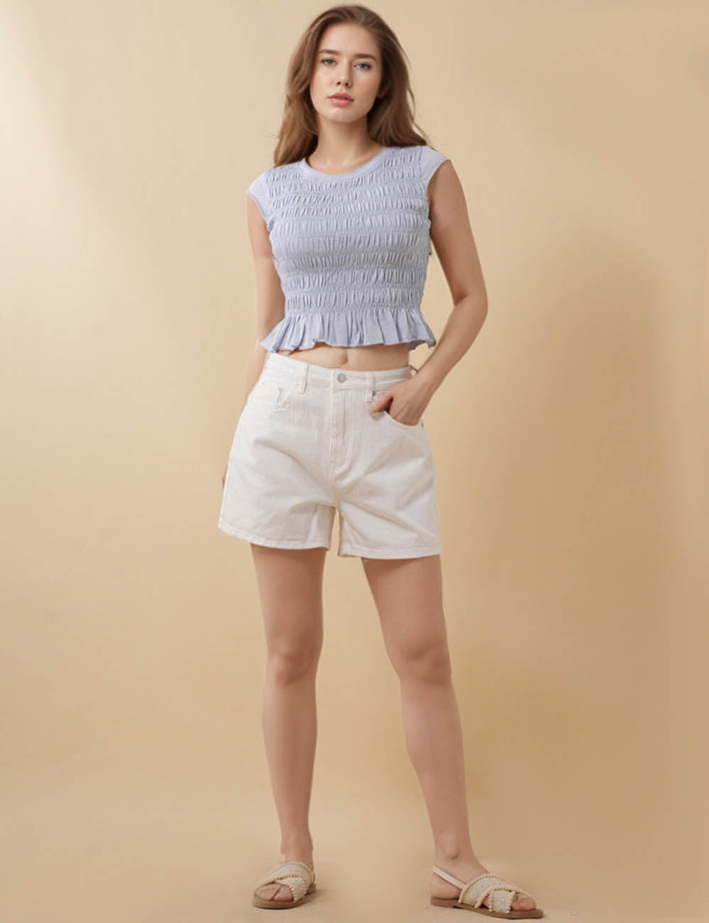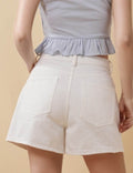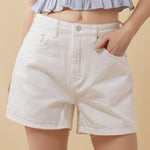 Ladies Solid Color Button Pocket Wide Leg Denim Shorts