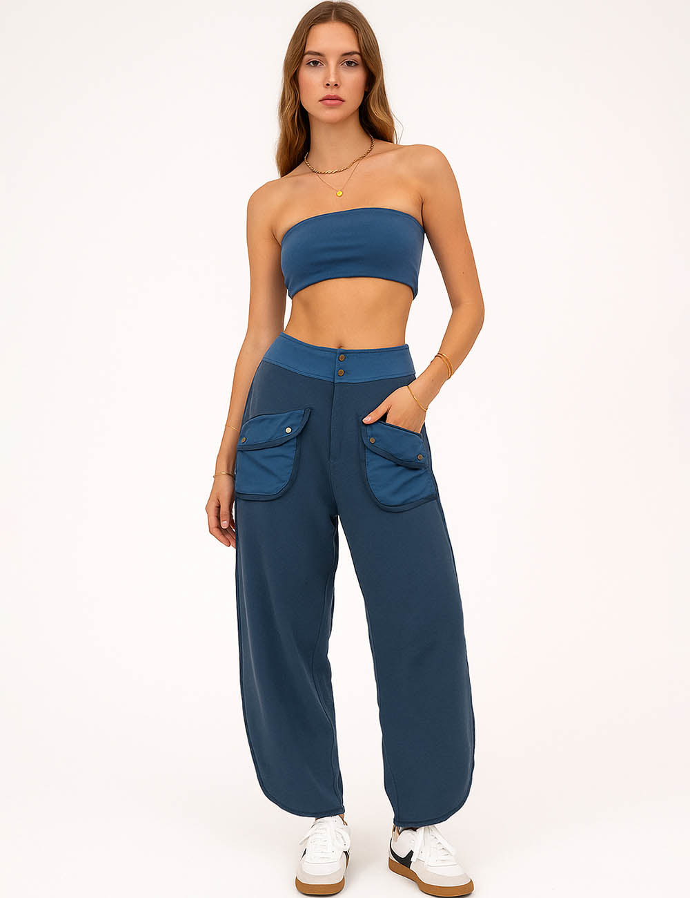 SWEETKAMA Ladies Solid Color Casual Pockets Pants