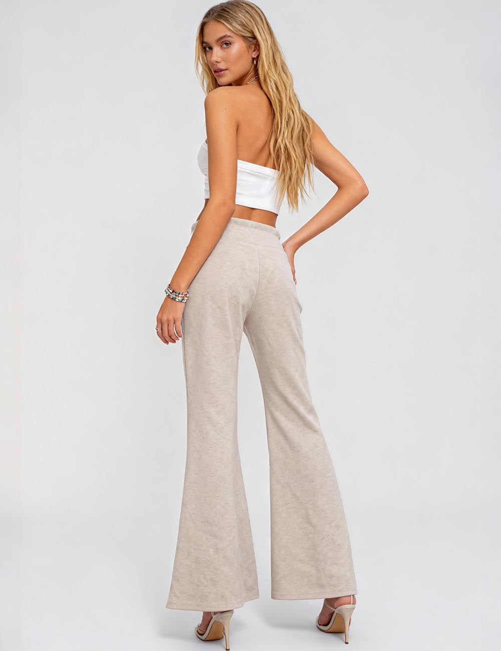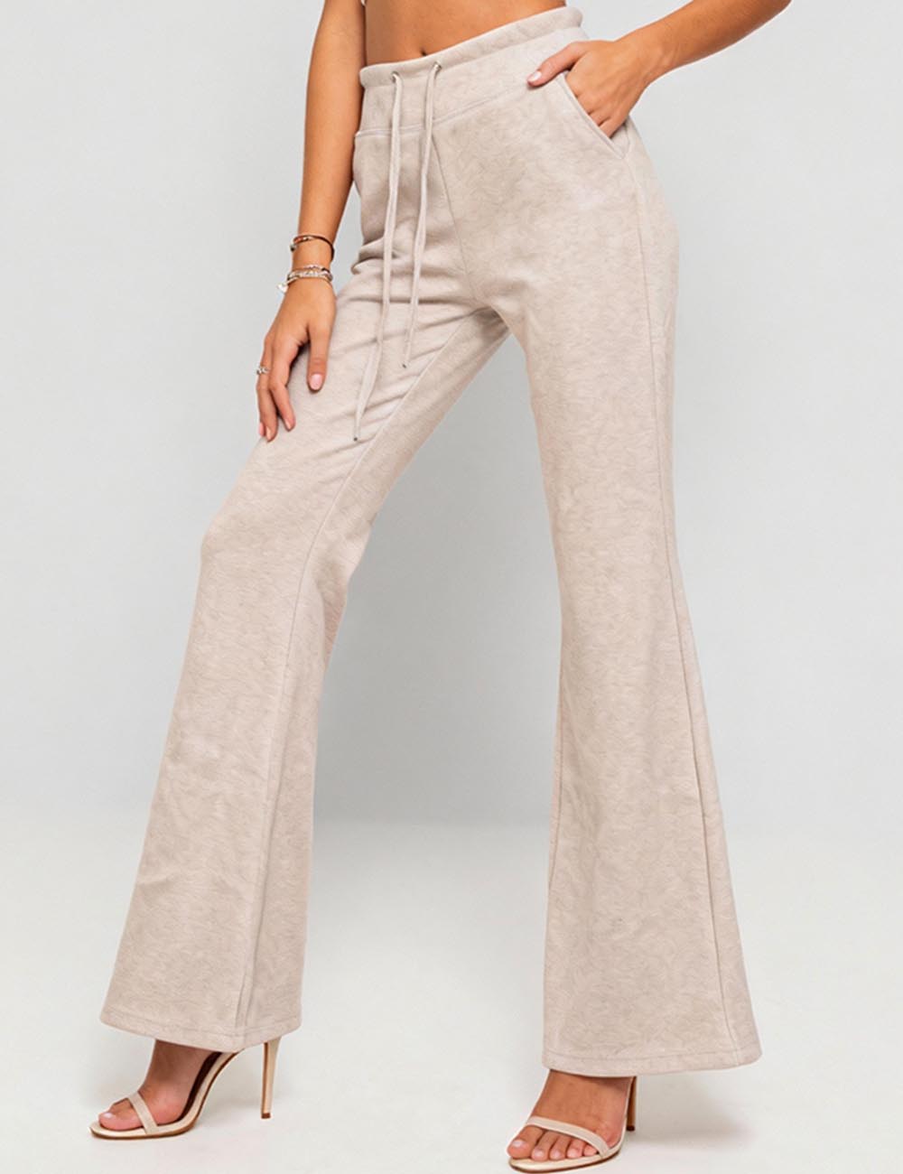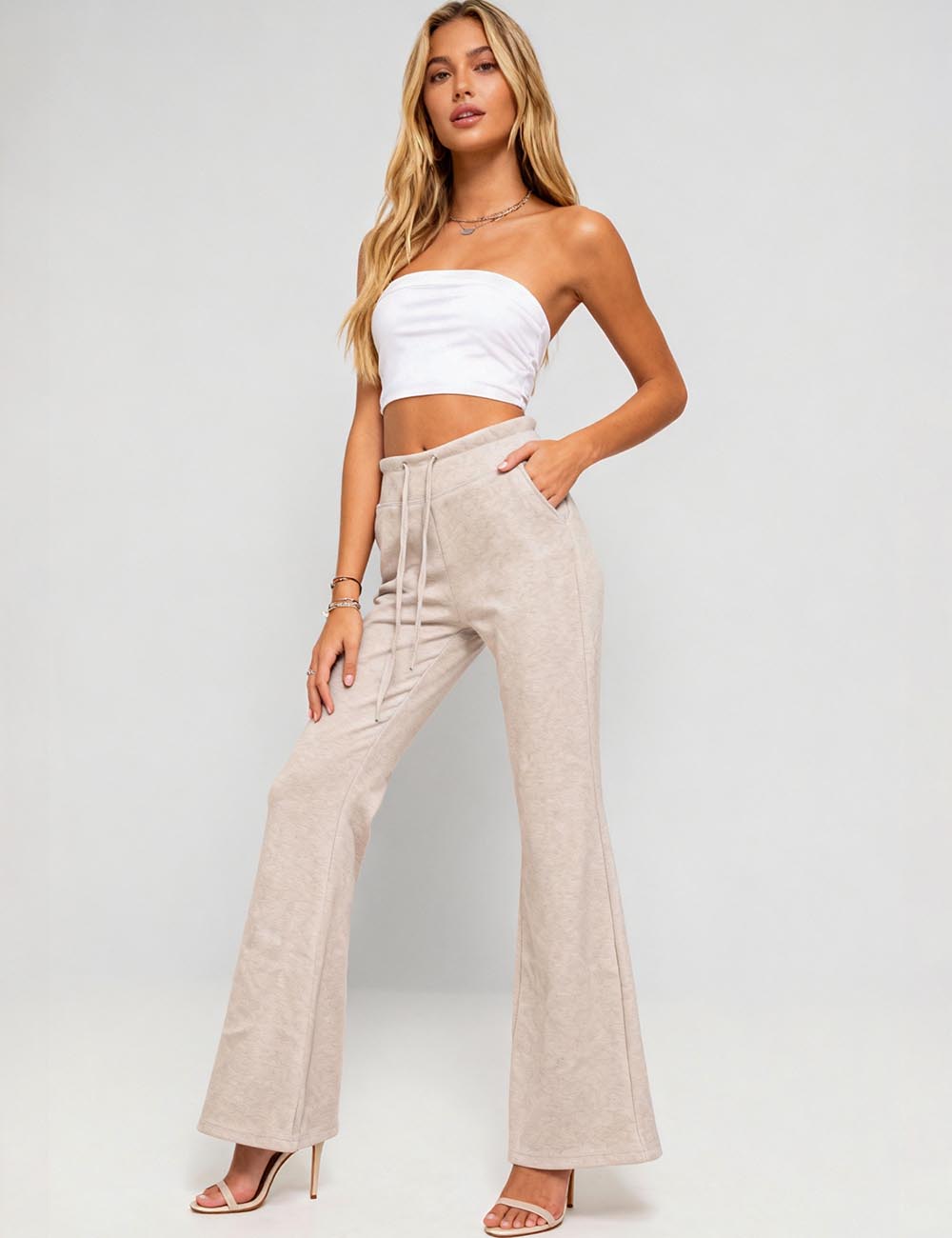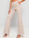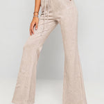 Ladies Solid Color Elastic Waist Drawstring Flared Leg Pants