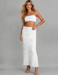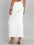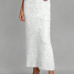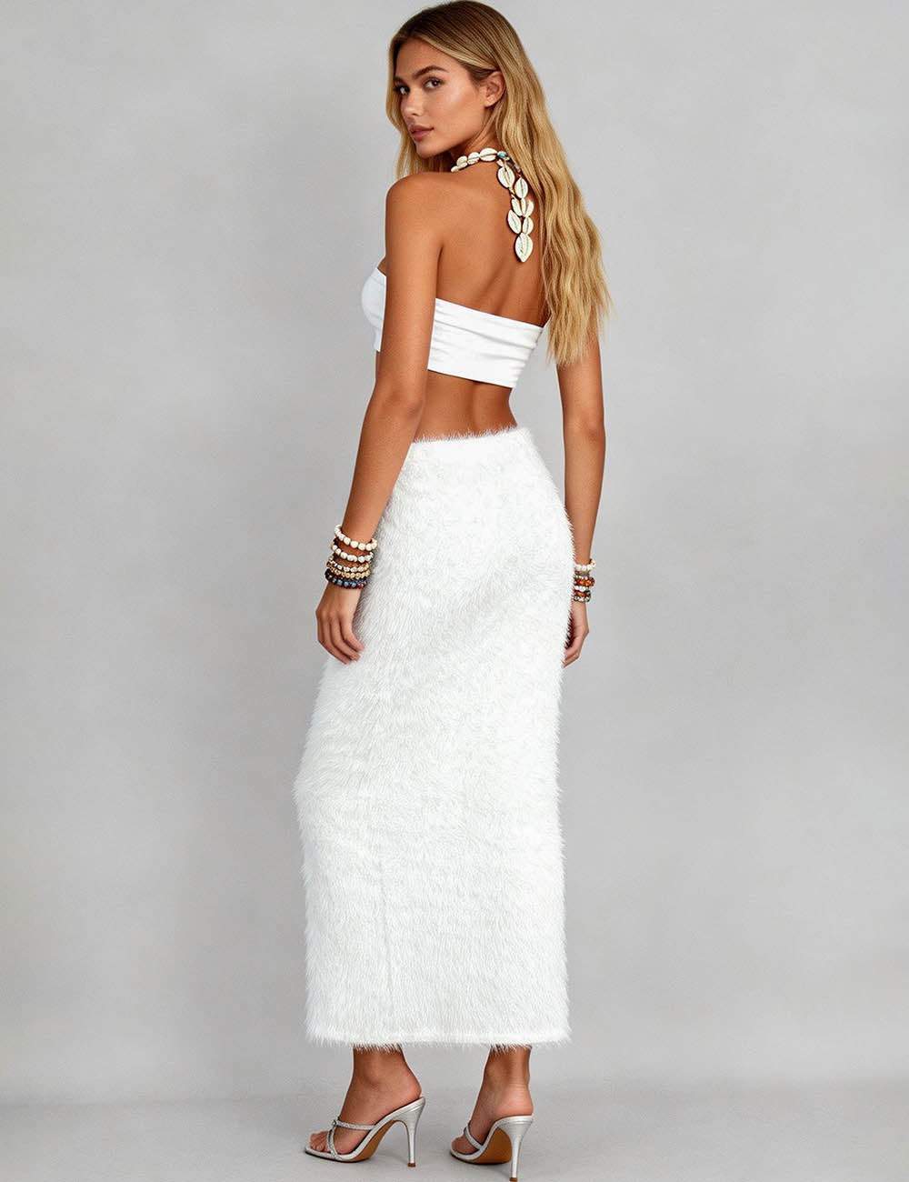 Ladies Solid Color Elastic Waist Faux Fur Fuzzy Maxi Skirt