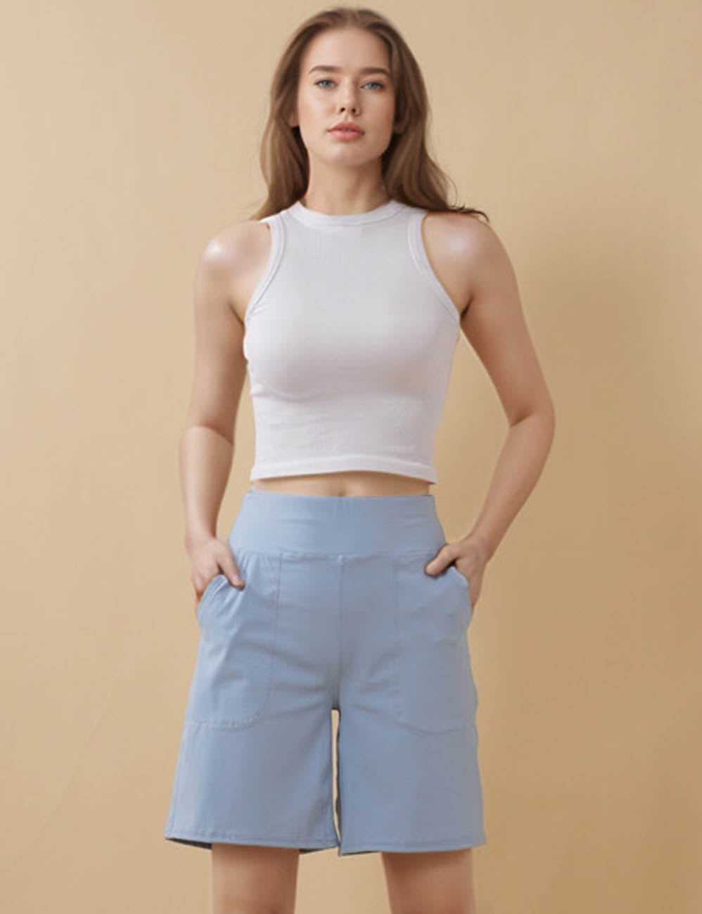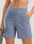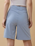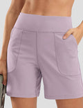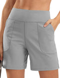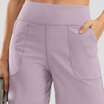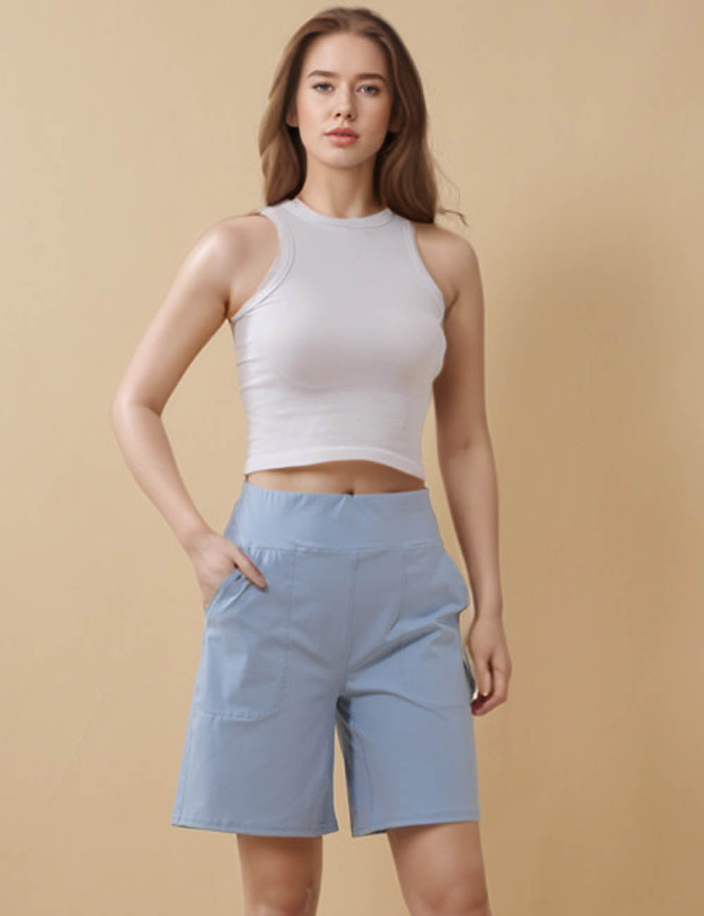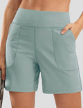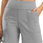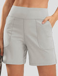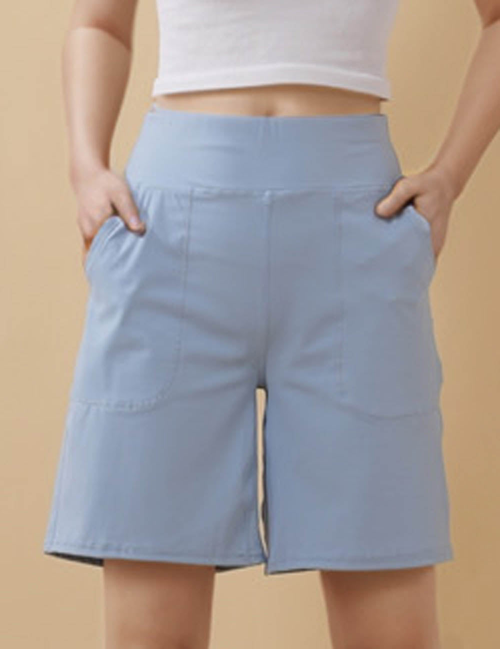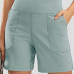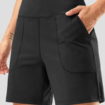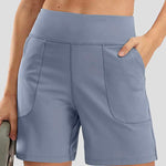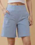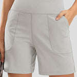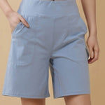 Ladies Solid Color Elastic Waist Pocket Sport Shorts