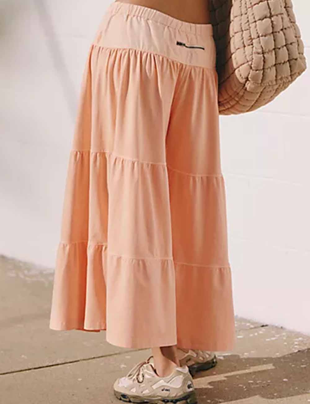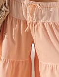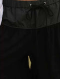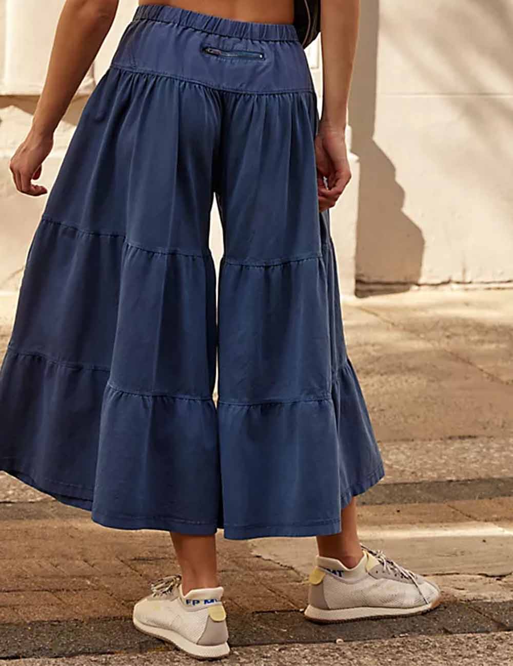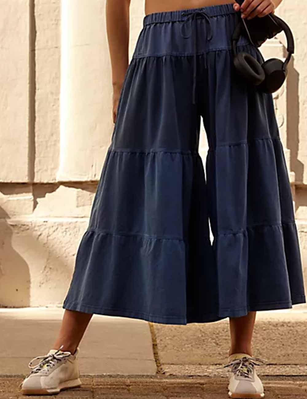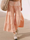 Ladies Solid Color Elastic Waist Ruched Tie Cropped Pants