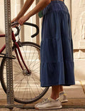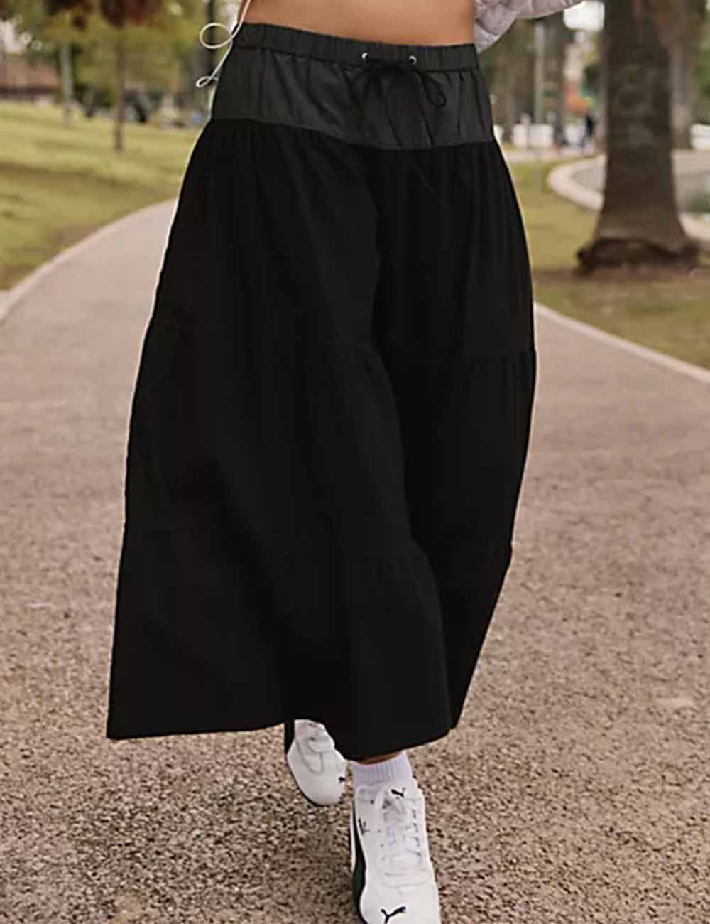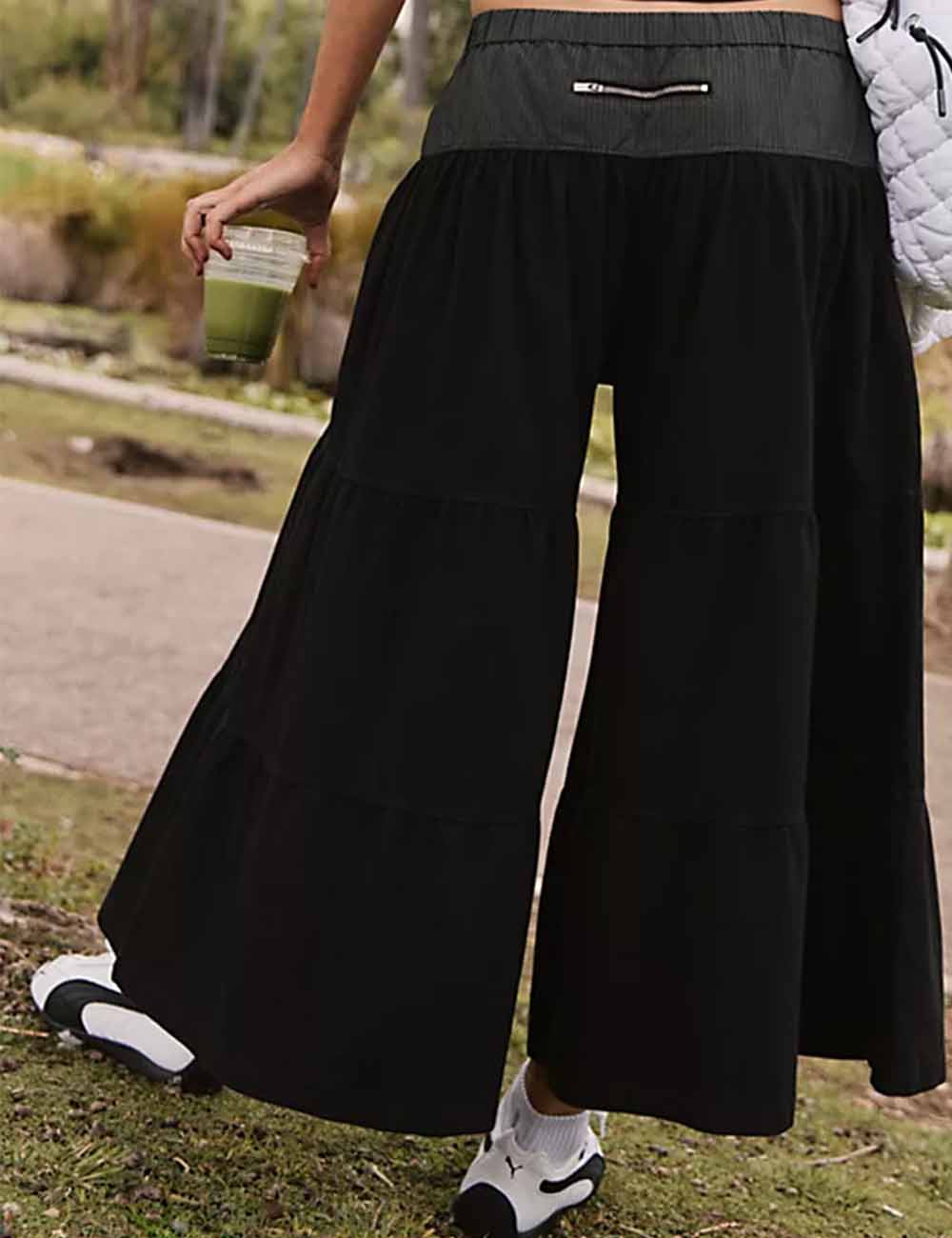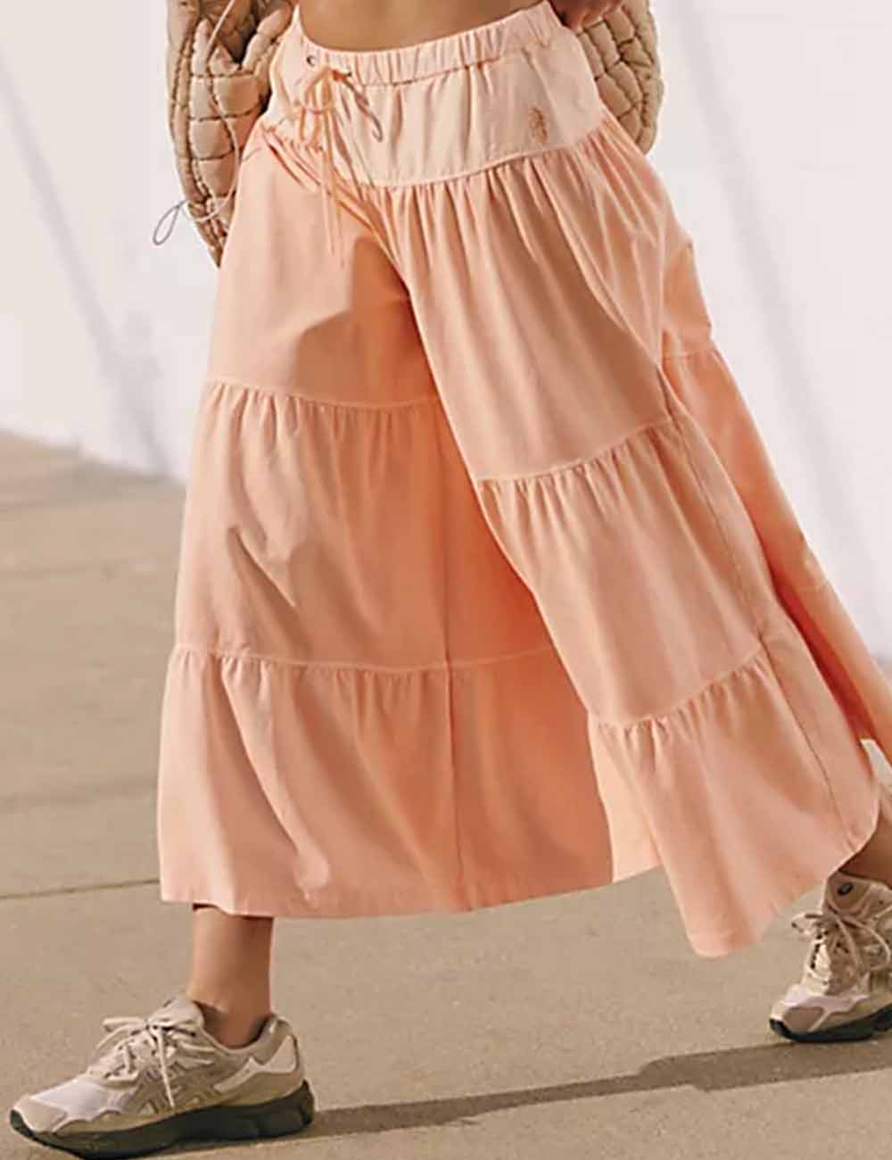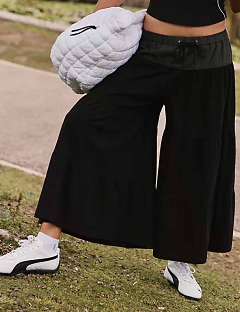 Ladies Solid Color Elastic Waist Ruched Tie Cropped Pants