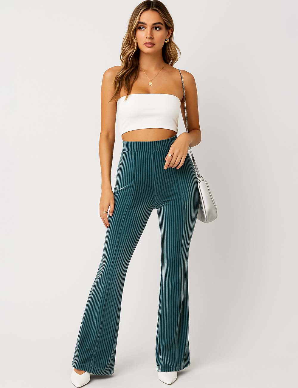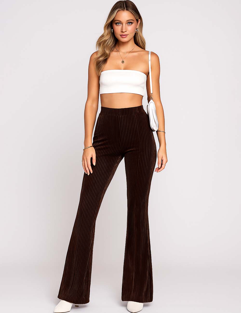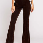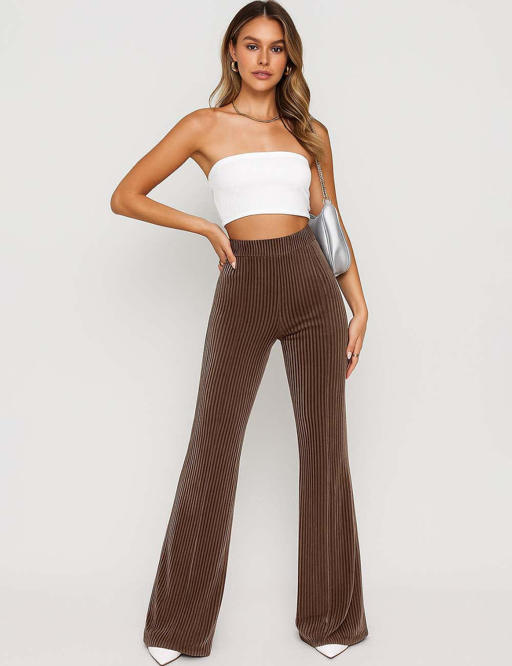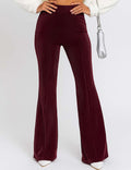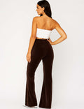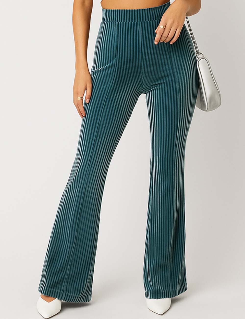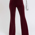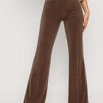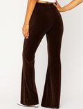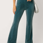 Ladies Solid Color Elastic Waist Slight Flared Corduroy Pants