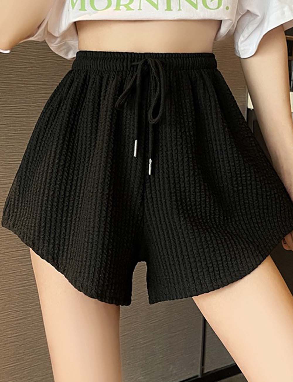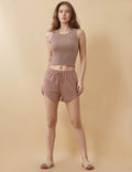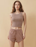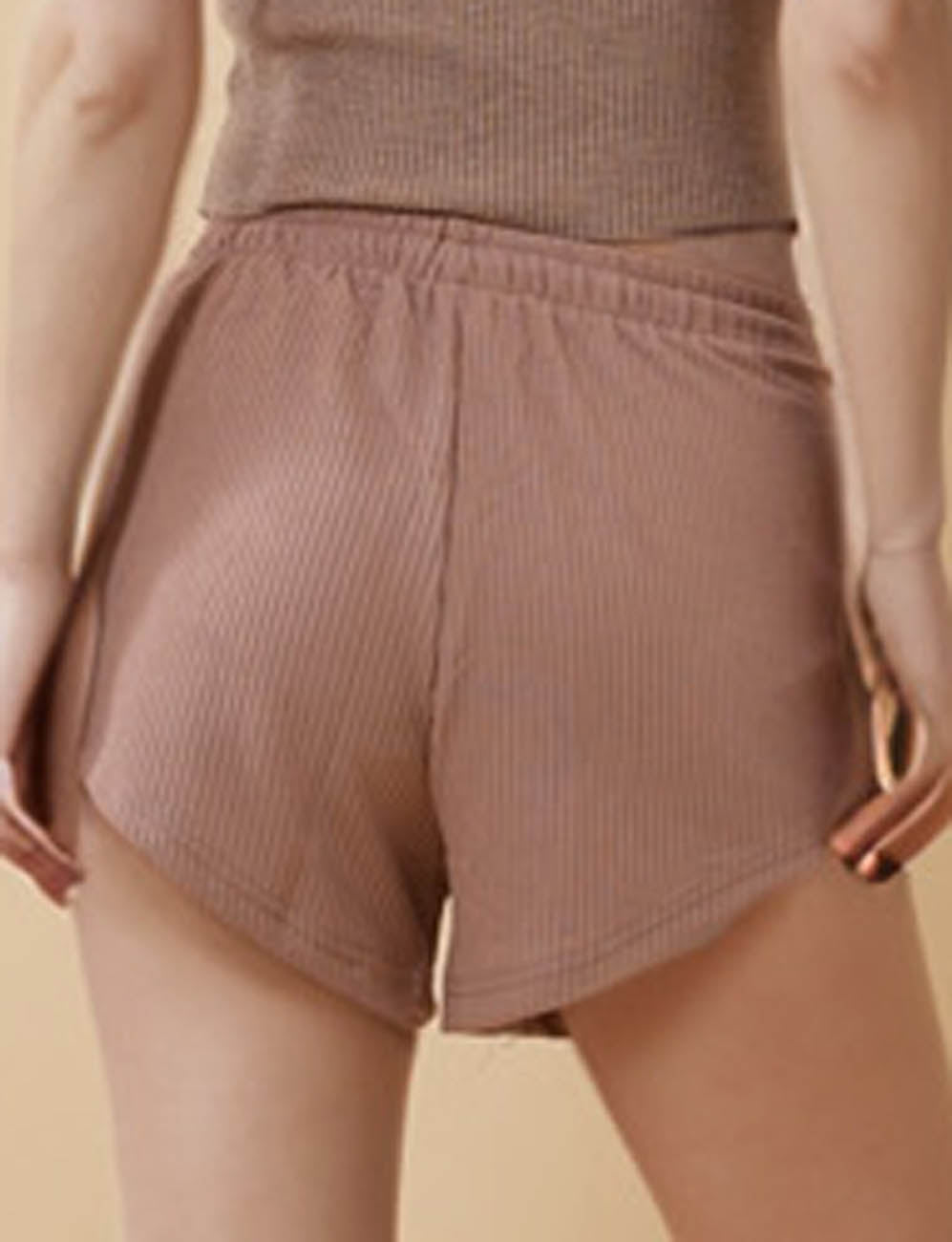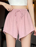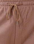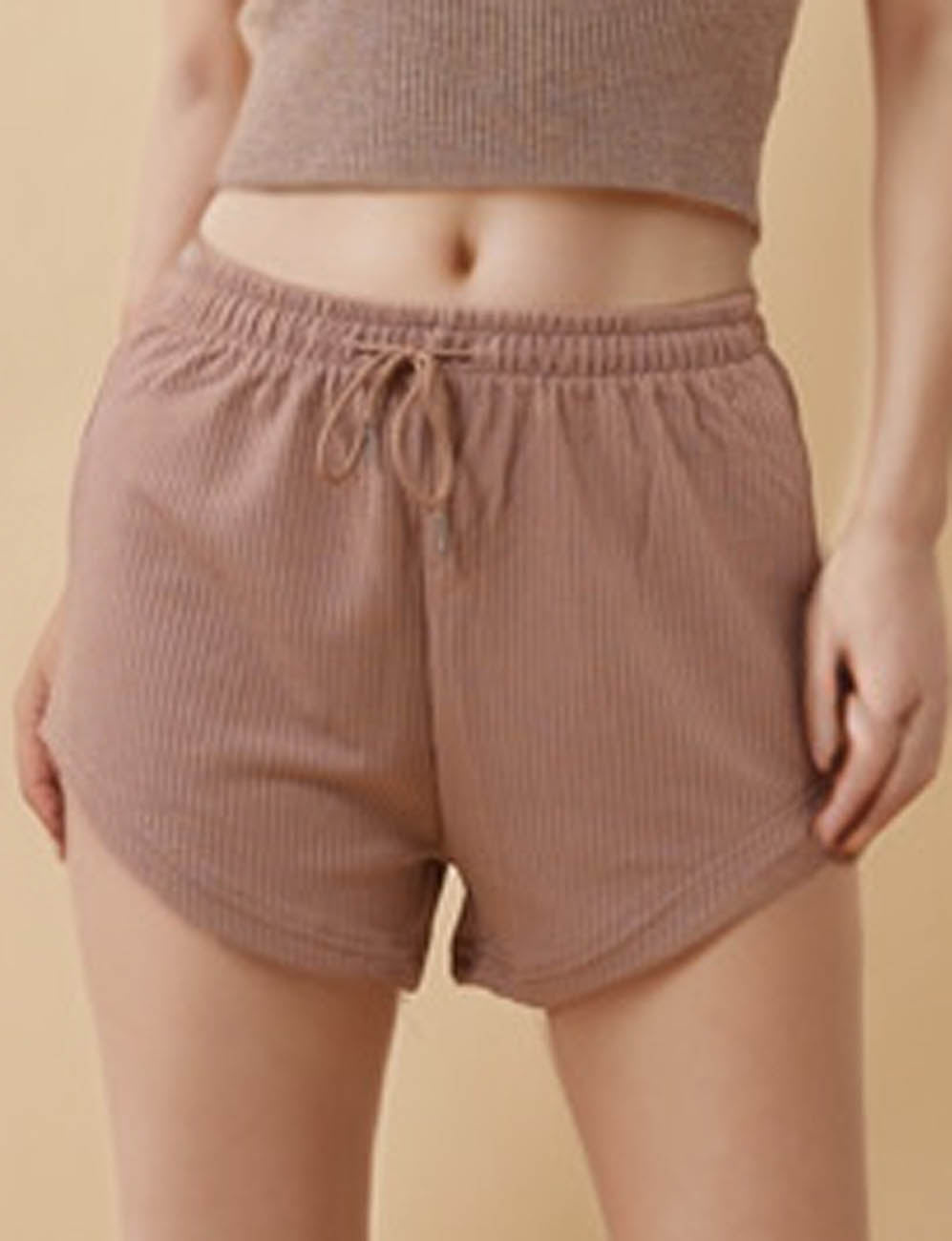 Ladies Solid Color Elastic Waist String Tie Ribbed Loungewear Shorts