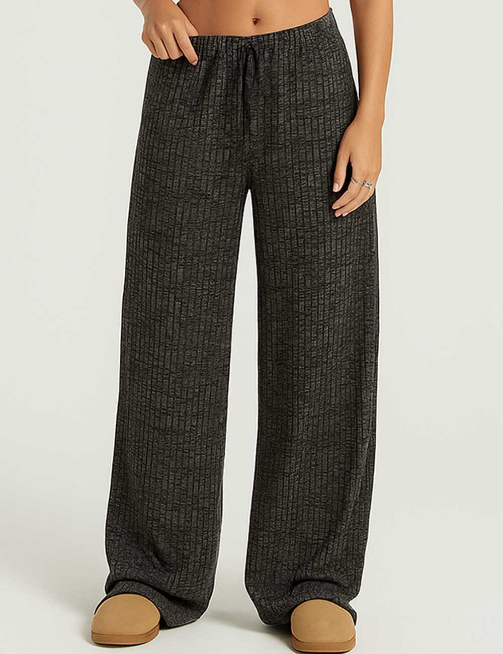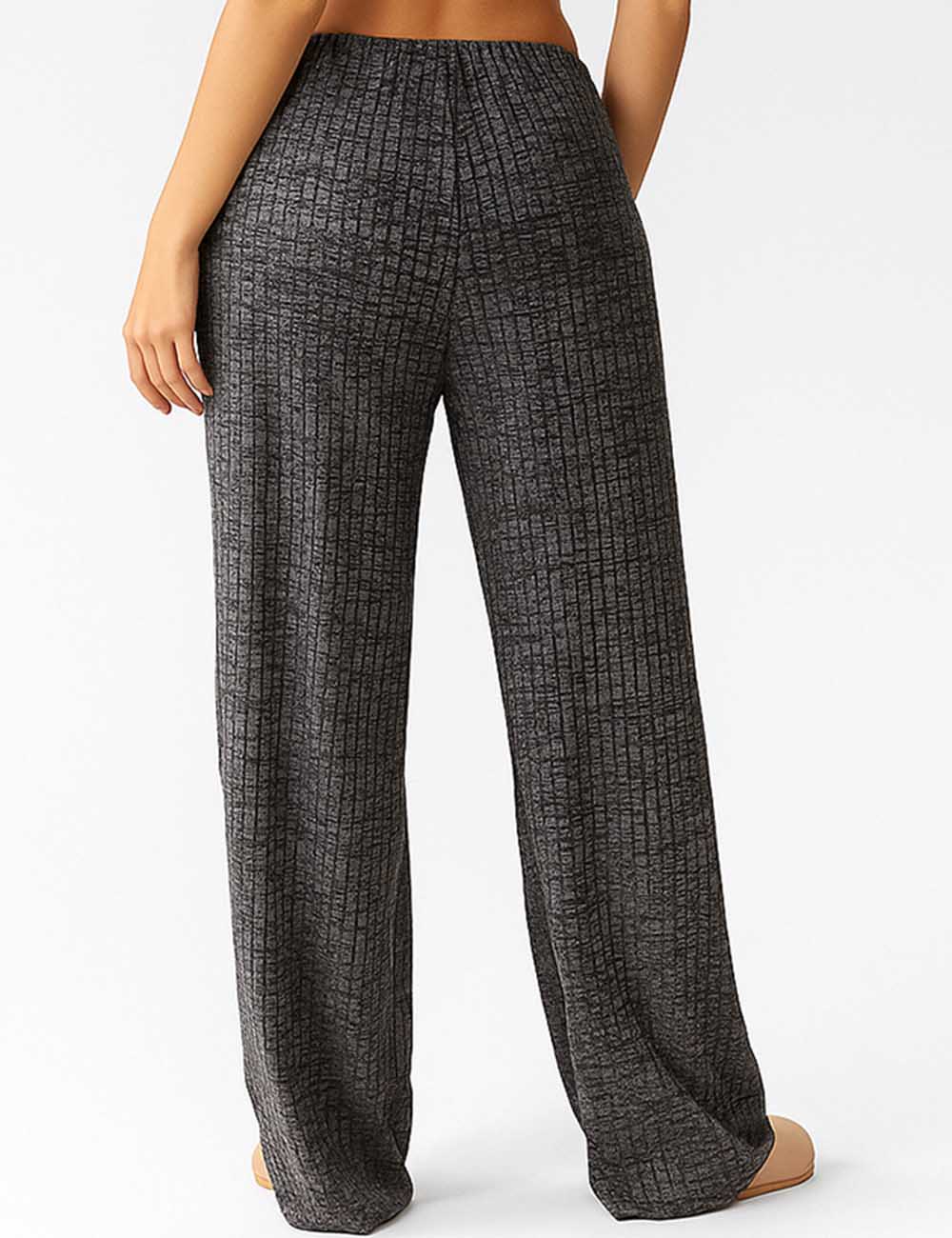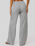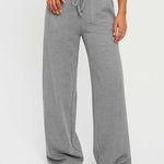 Ladies Solid Color Elastic Waist String Tie Wide Leg Pants