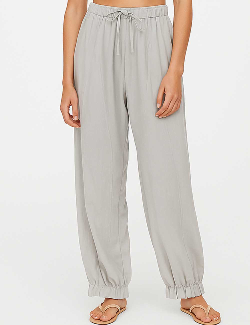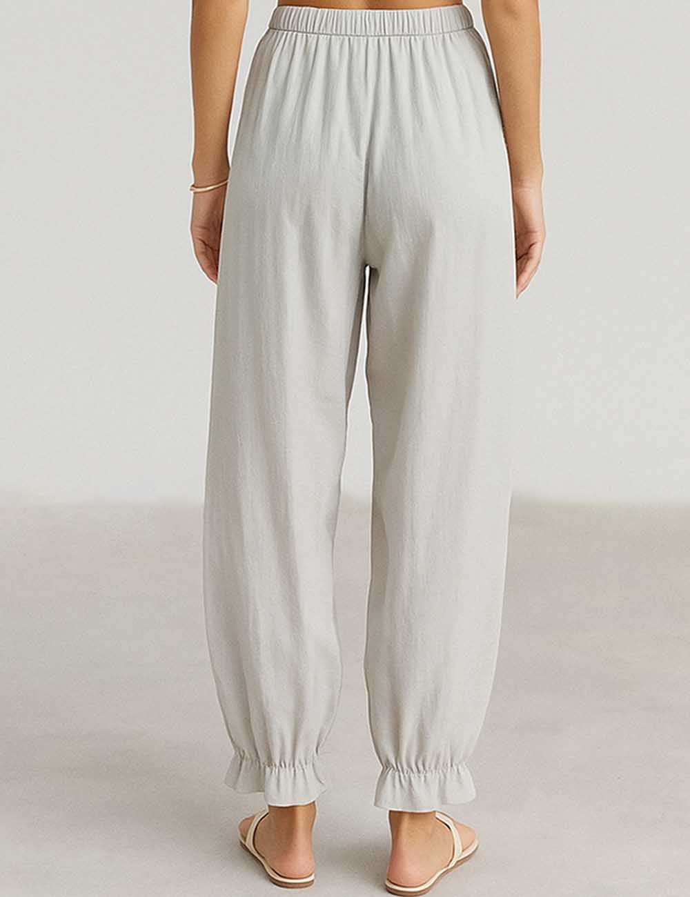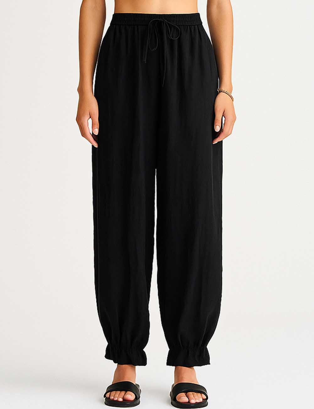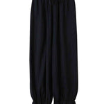 Ladies Solid Color Elastic Waist Tie Balloon Pants