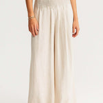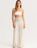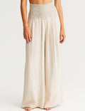 Ladies Solid Color Embroidery Elastic Waist Wide Leg Pants