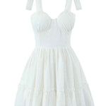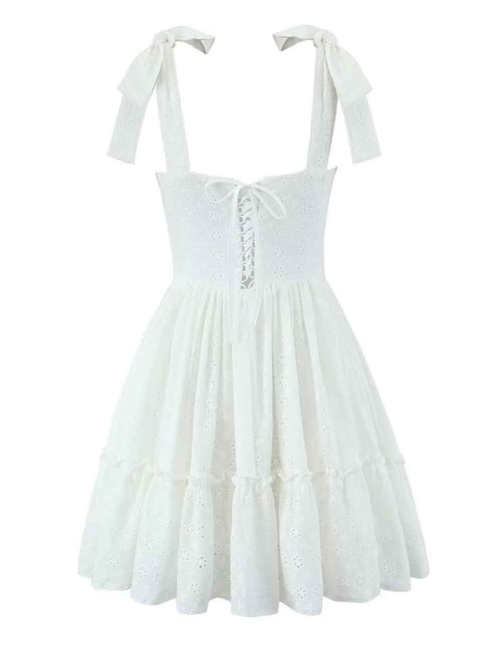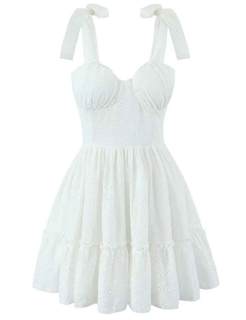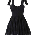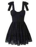 Ladies Solid Color Embroidery Strap Shoulder Mini Dress
