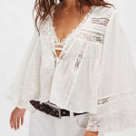Ladies Solid Color Eyelets Ruffle Lace Blouse