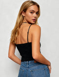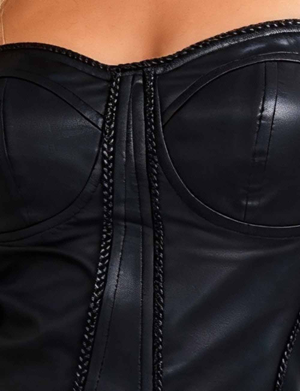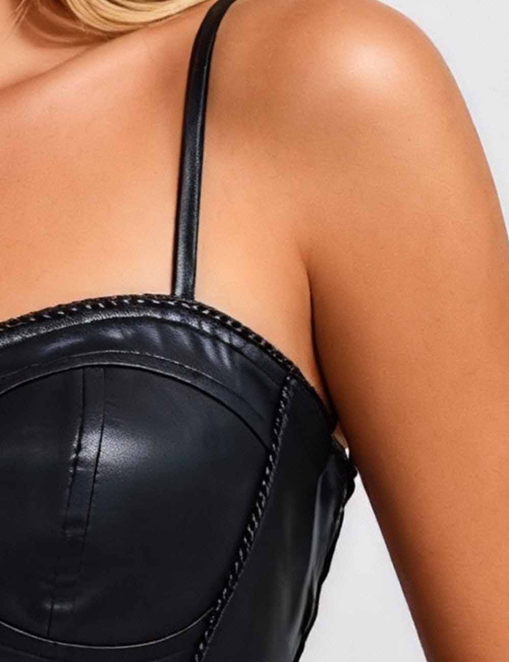 Ladies Solid Color Faux Leather Corset Bustier Cami Top