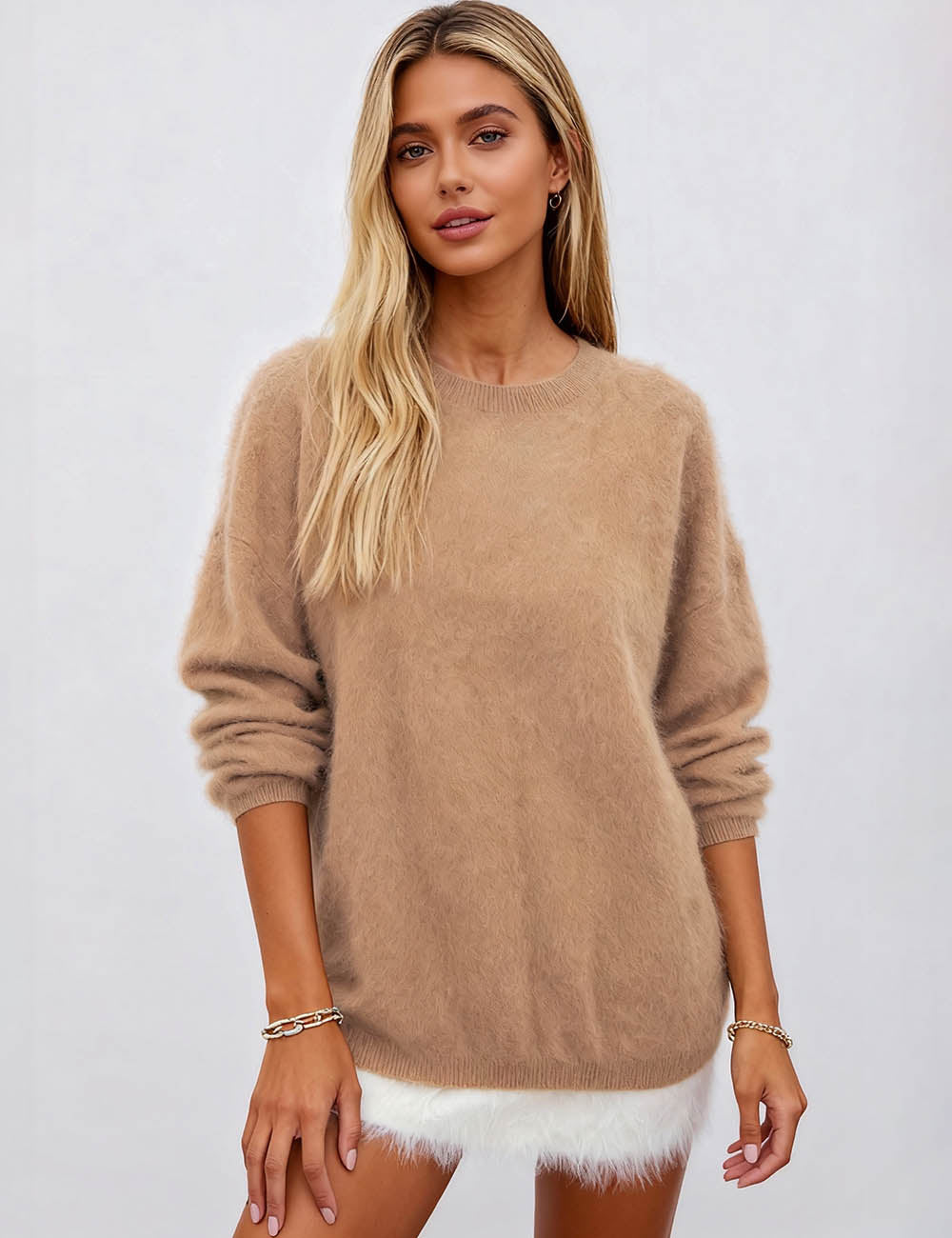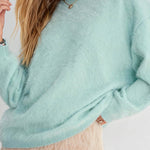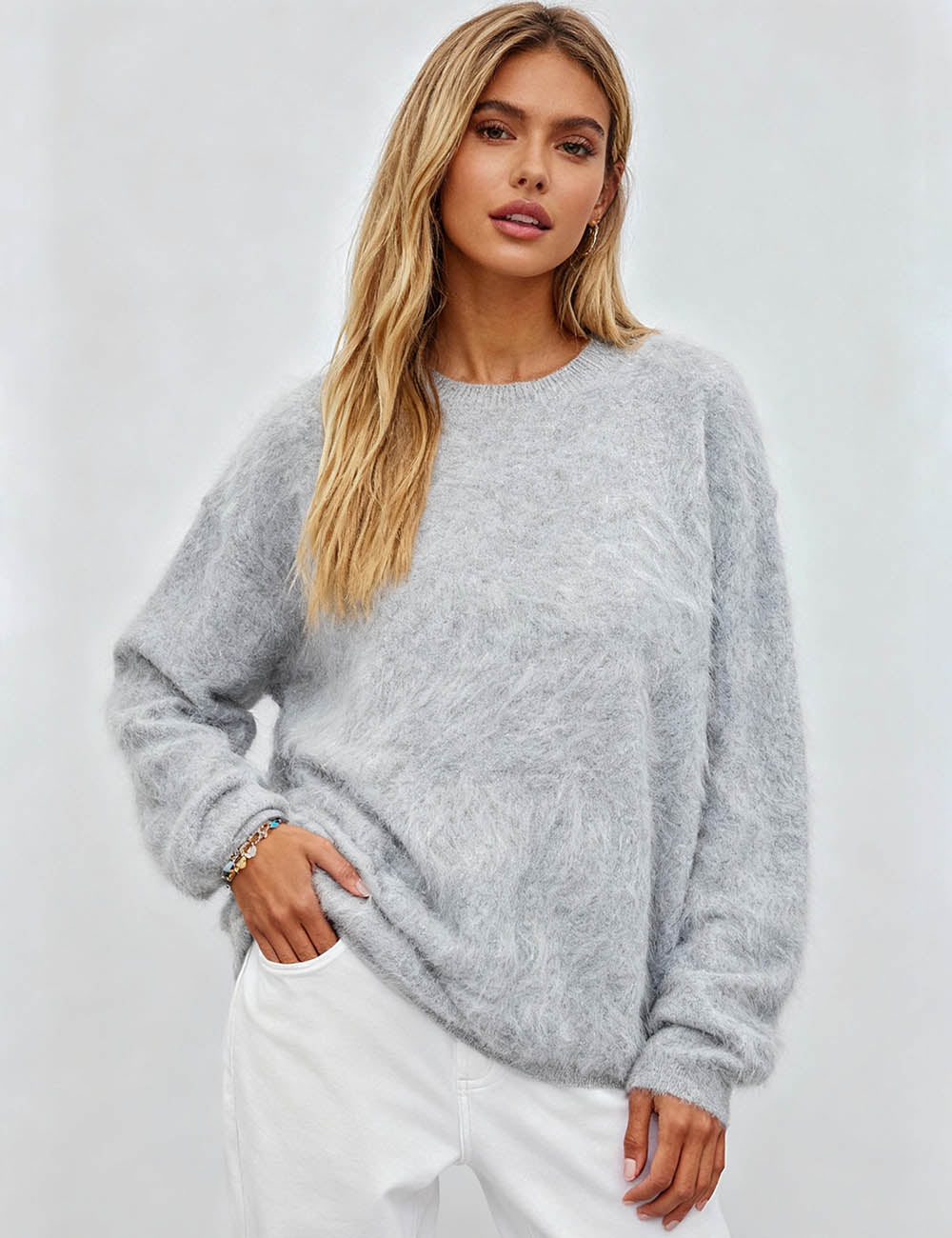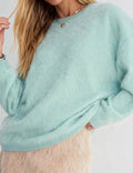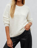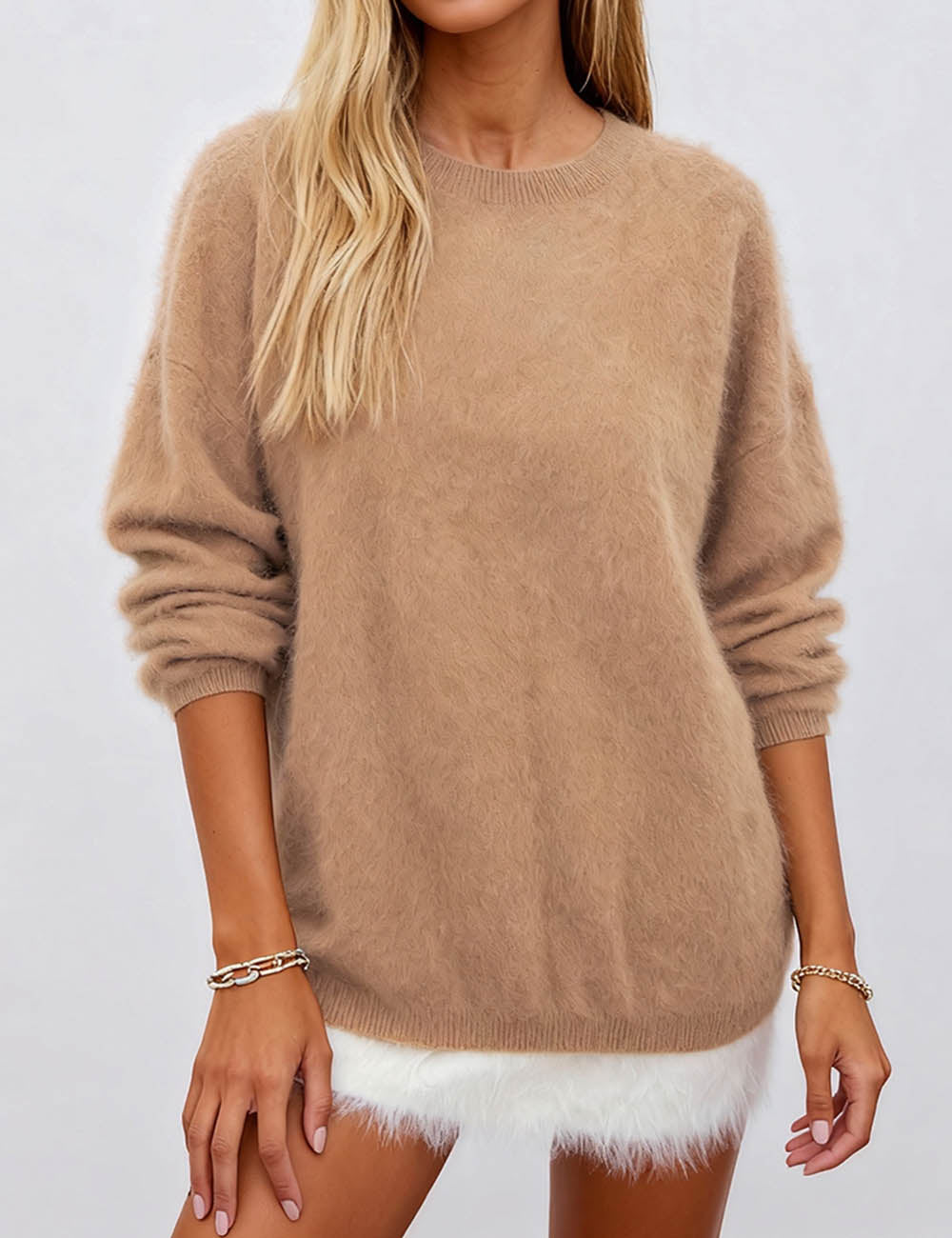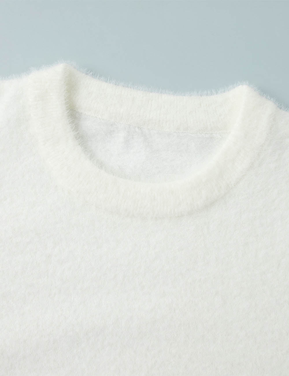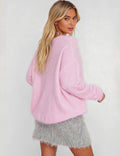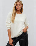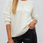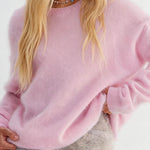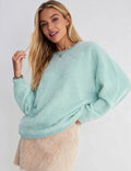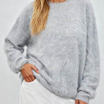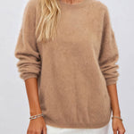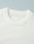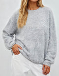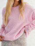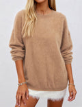 Ladies Solid Color Fluffy Knit Round Neck Pullover Sweater