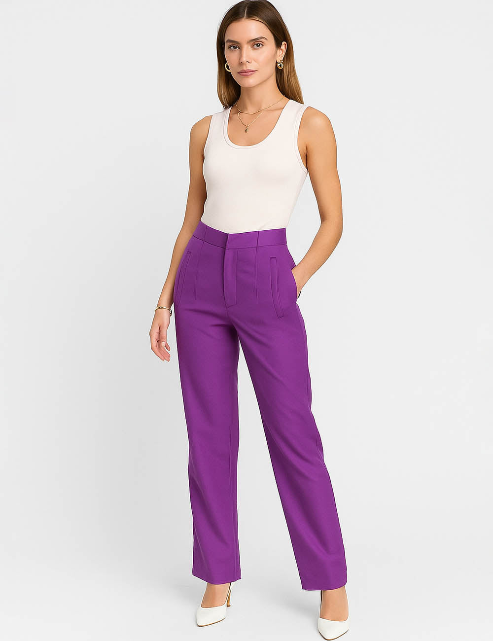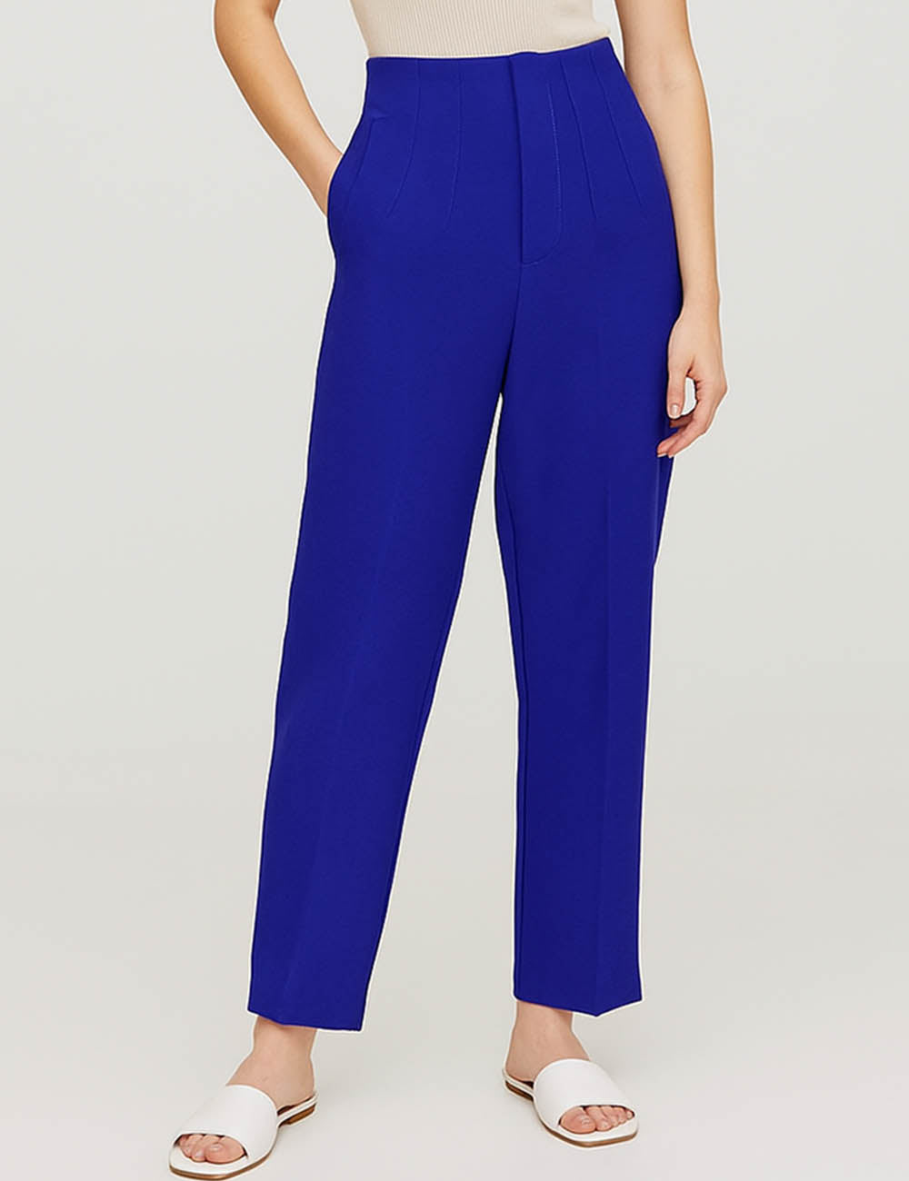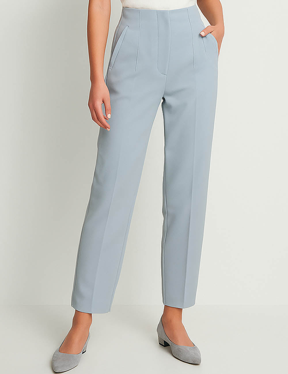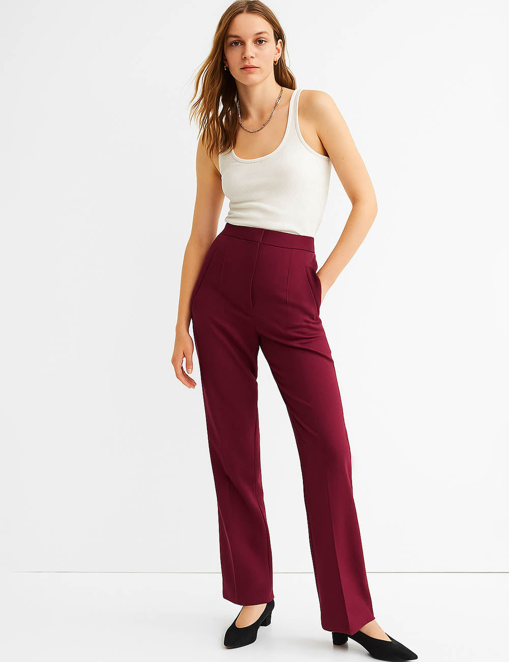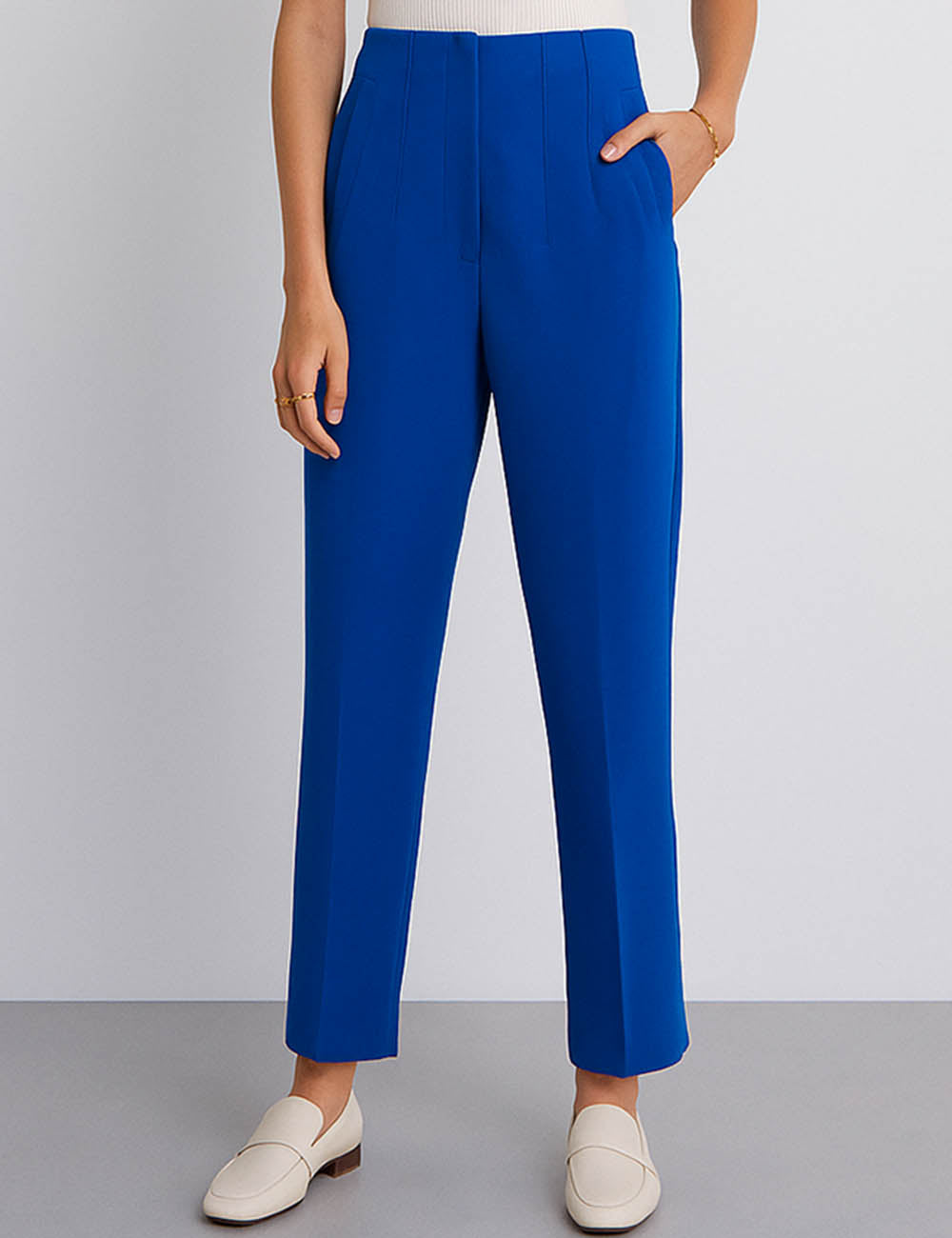 Ladies Solid Color Tailored Straight Leg Pants