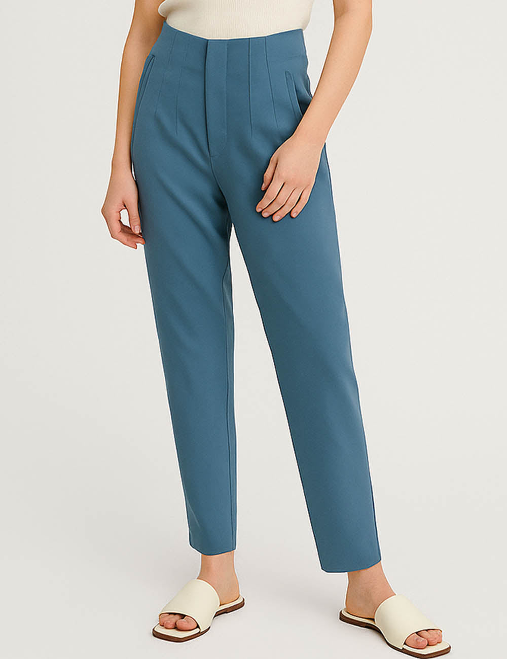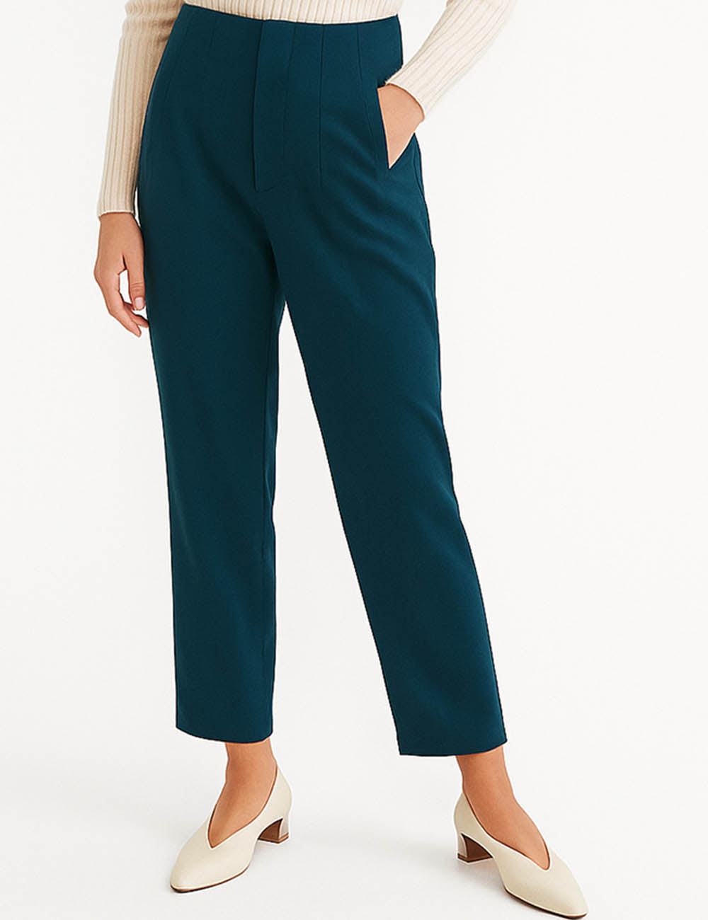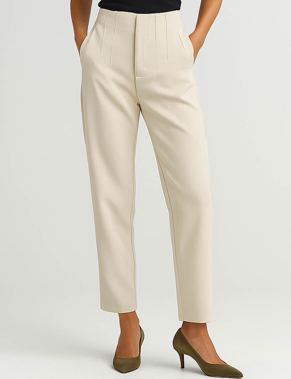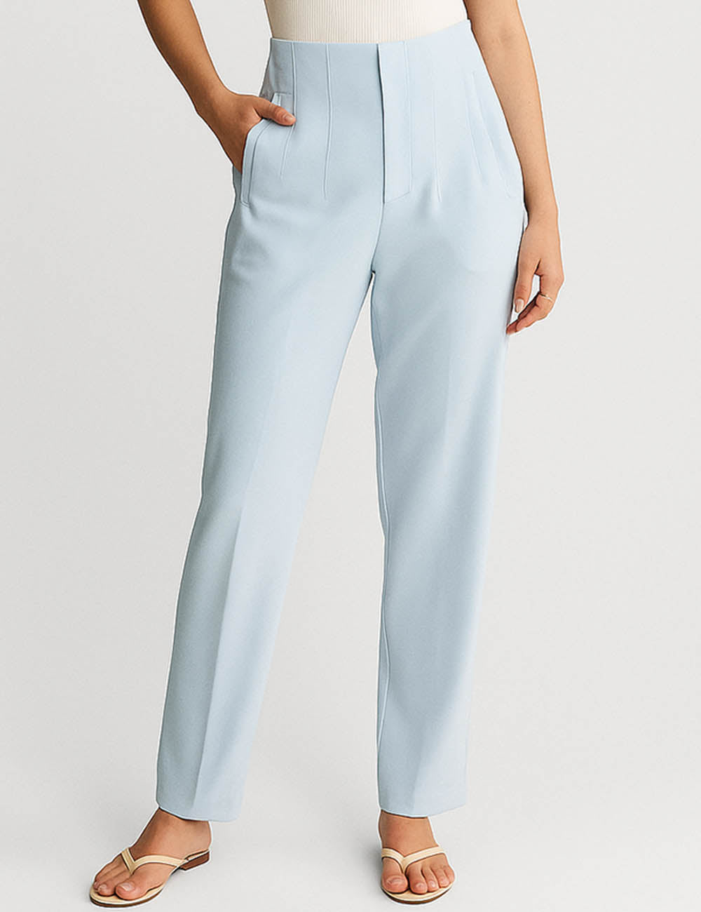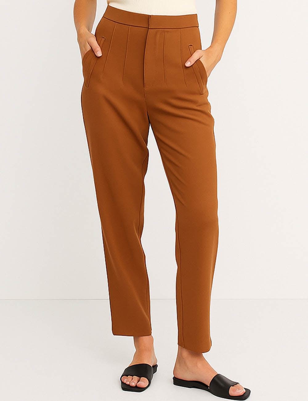 Ladies Solid Color Tailored Straight Leg Pants