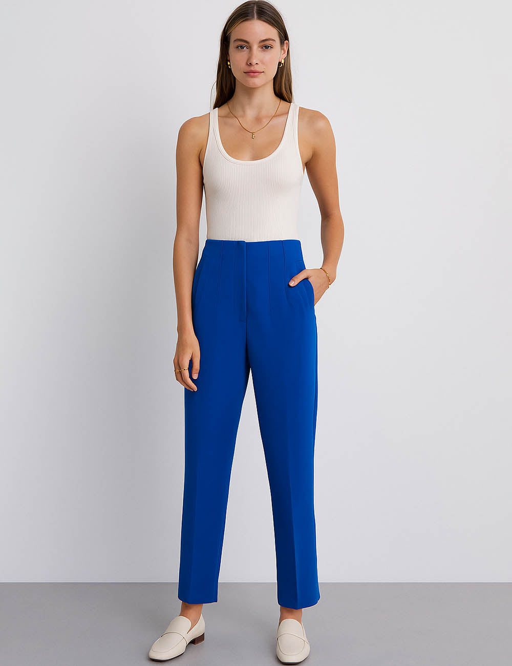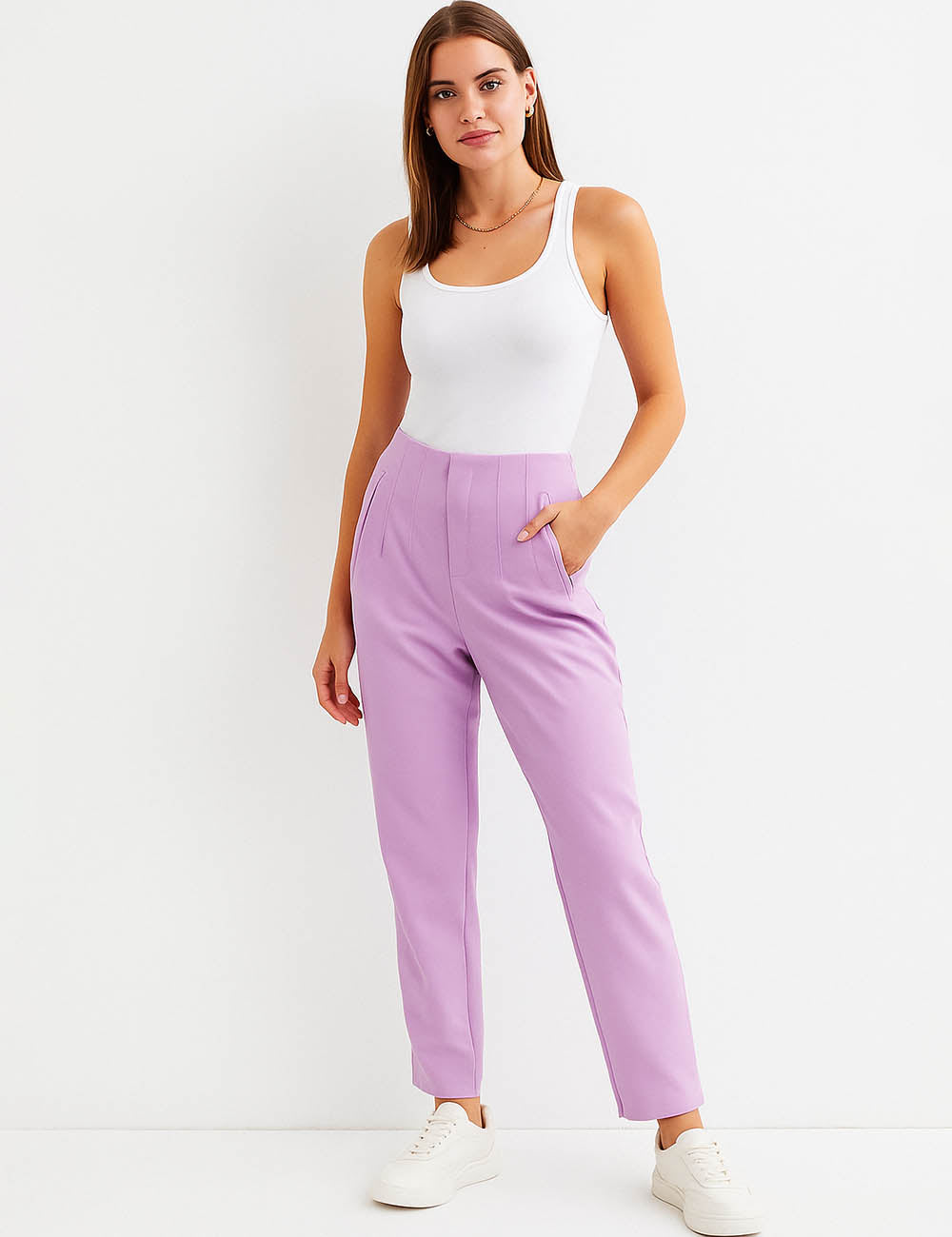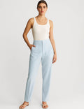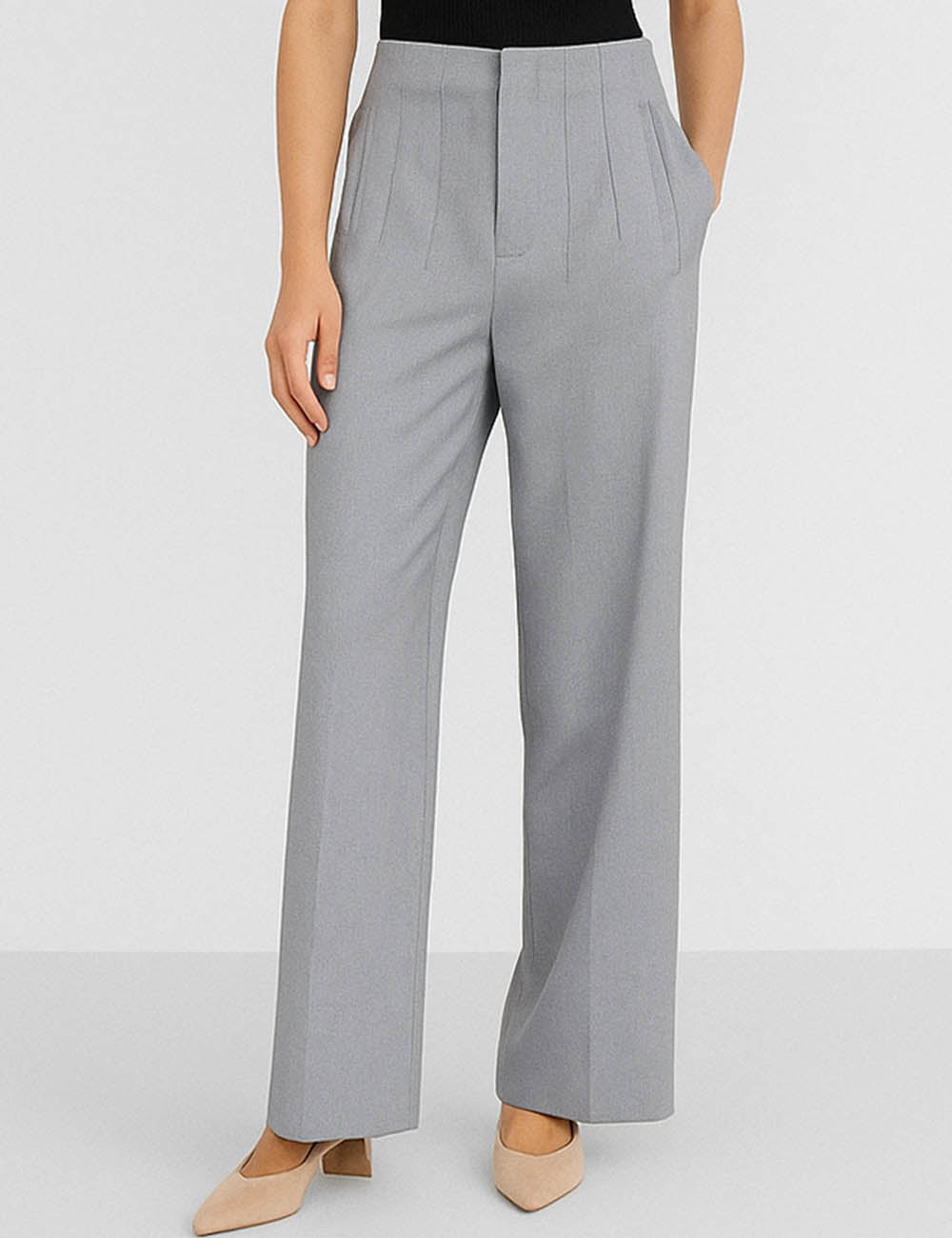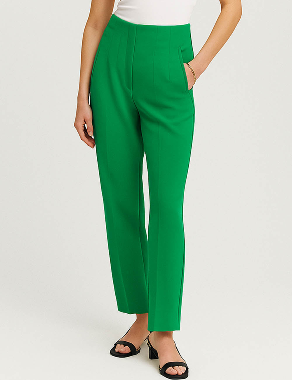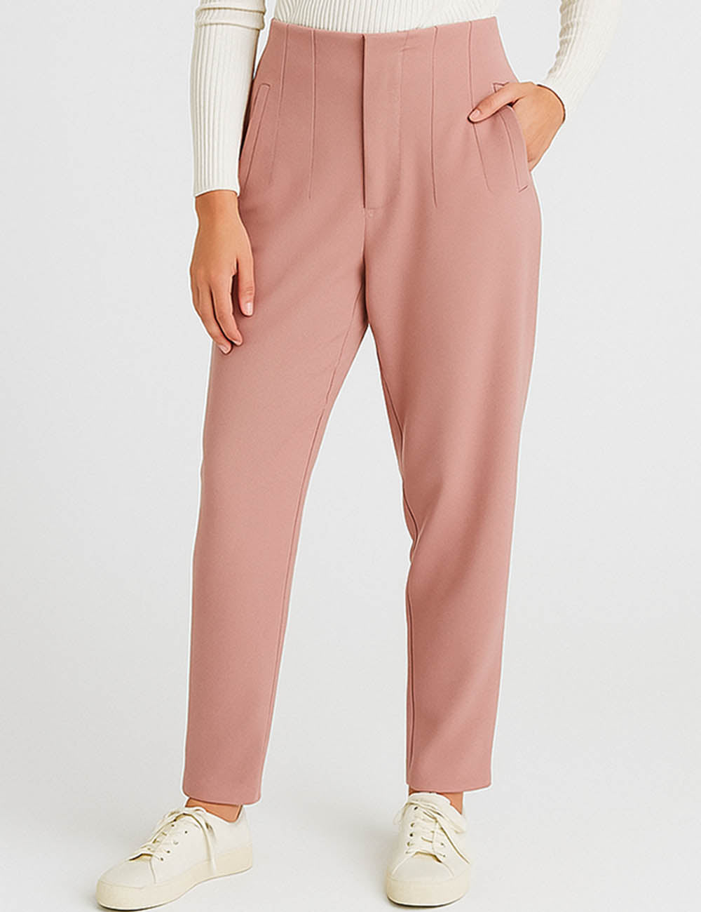 Ladies Solid Color Tailored Straight Leg Pants